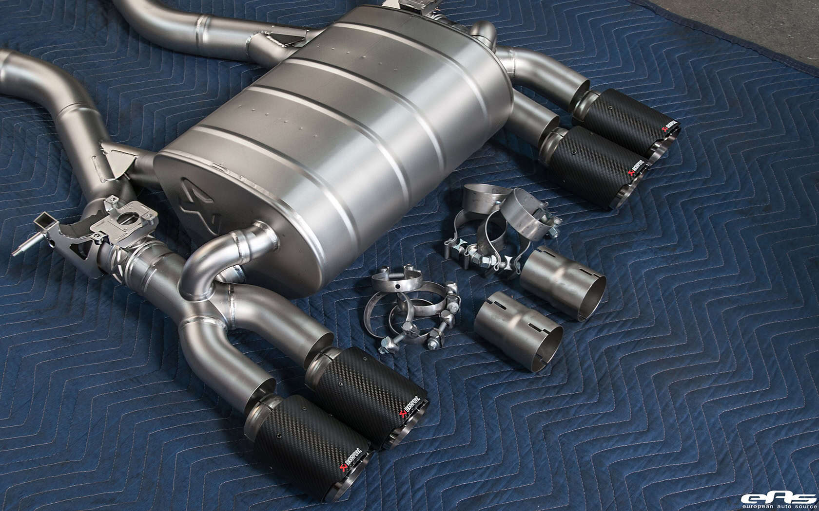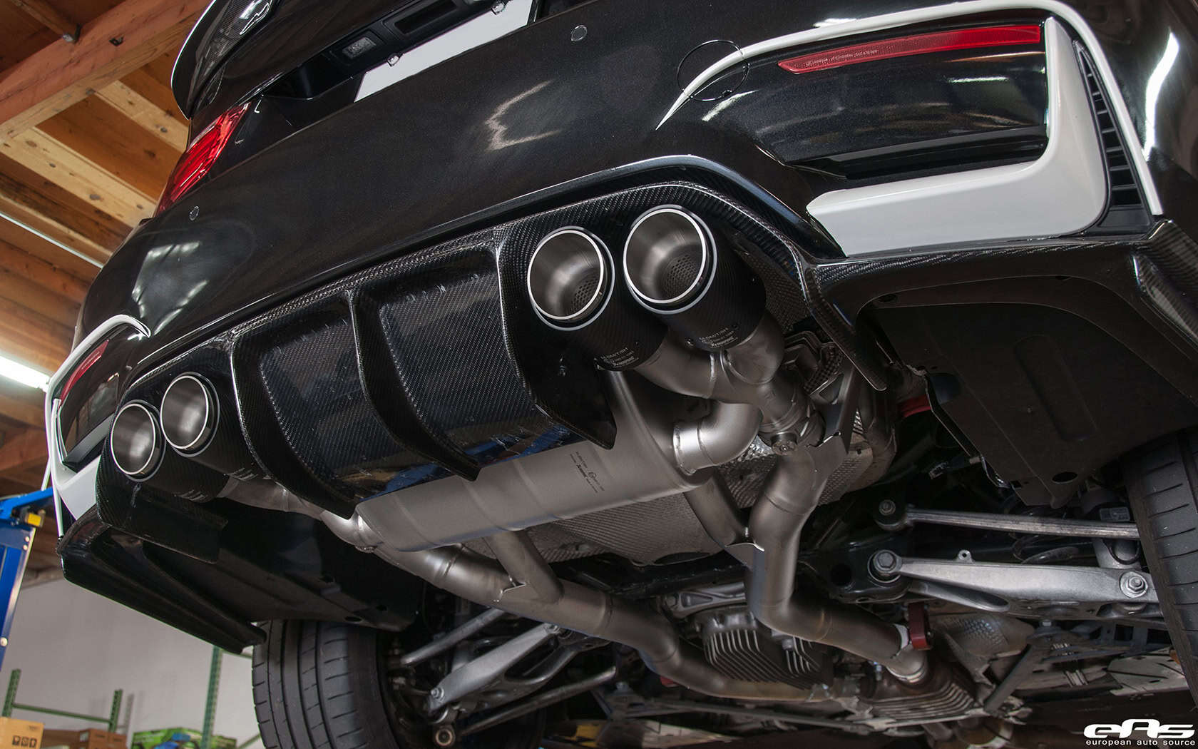 The build started off as a plain ol’ Sapphire Black BMW M4. Then, the owner took it to European Auto Source for a plentiful of performance and visual modifications. It all started with an Akrapovic Titanium Exhaust System installed. This Akrapovic slip-on exhaust comes as an axle-back, lightweight and amazing sounding performance upgrade. Made of titanium, the Akrapovic exhaust reduces the overall vehicle weight and delivers extra power that’s combined with a sporty sound. The engineers at Akrapovic have tailored this to highlight the lower frequencies and increase the audible enjoyment for both the driver/passengers, but also for the innocent bystanders as well.