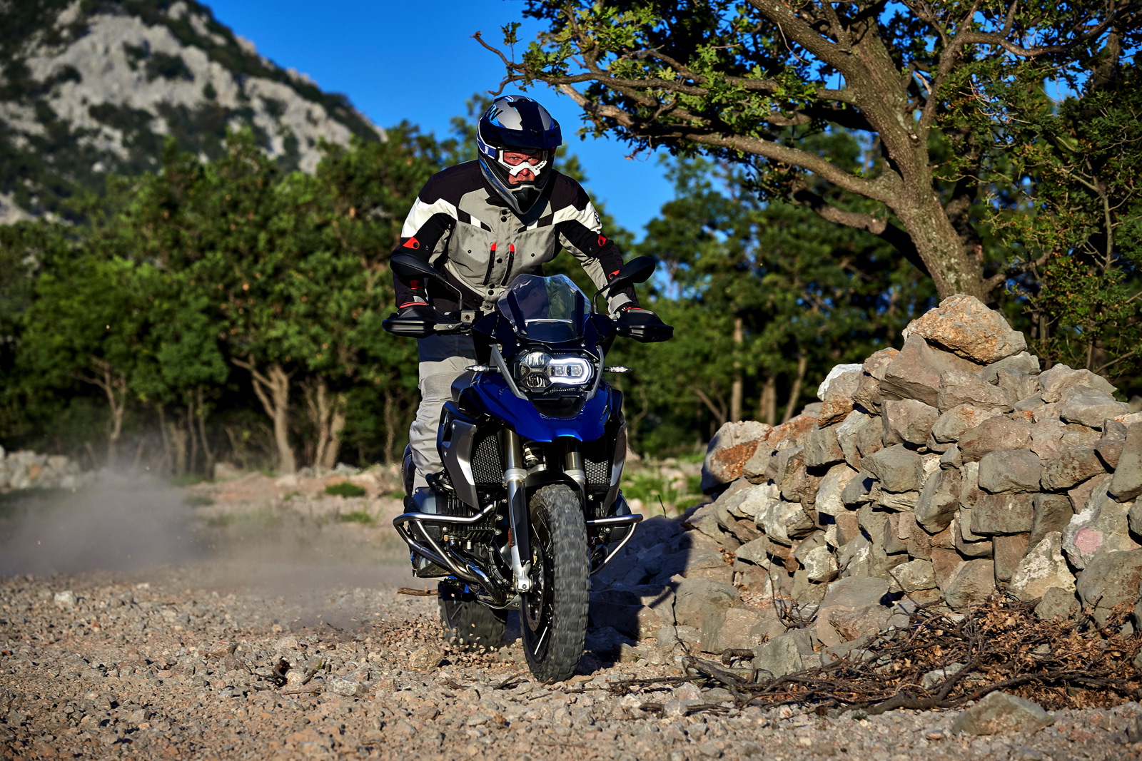 The Rallye package available ex works allows the new R 1200 GS to be optimized for more ambitious off-road use. Off-road performance is significantly increased due to an increased spring rate (“harder suspension”), longer spring struts and extended spring travel.