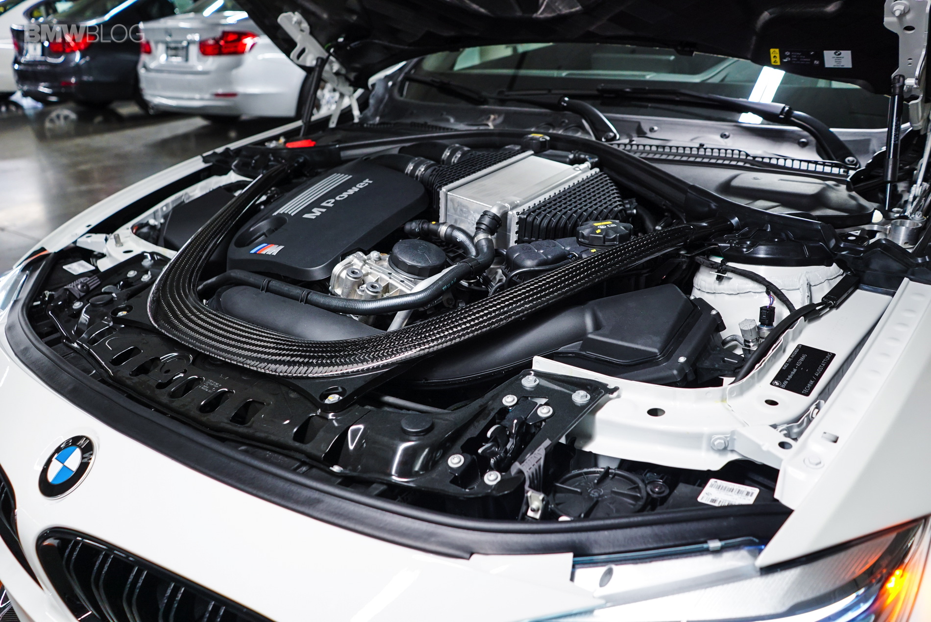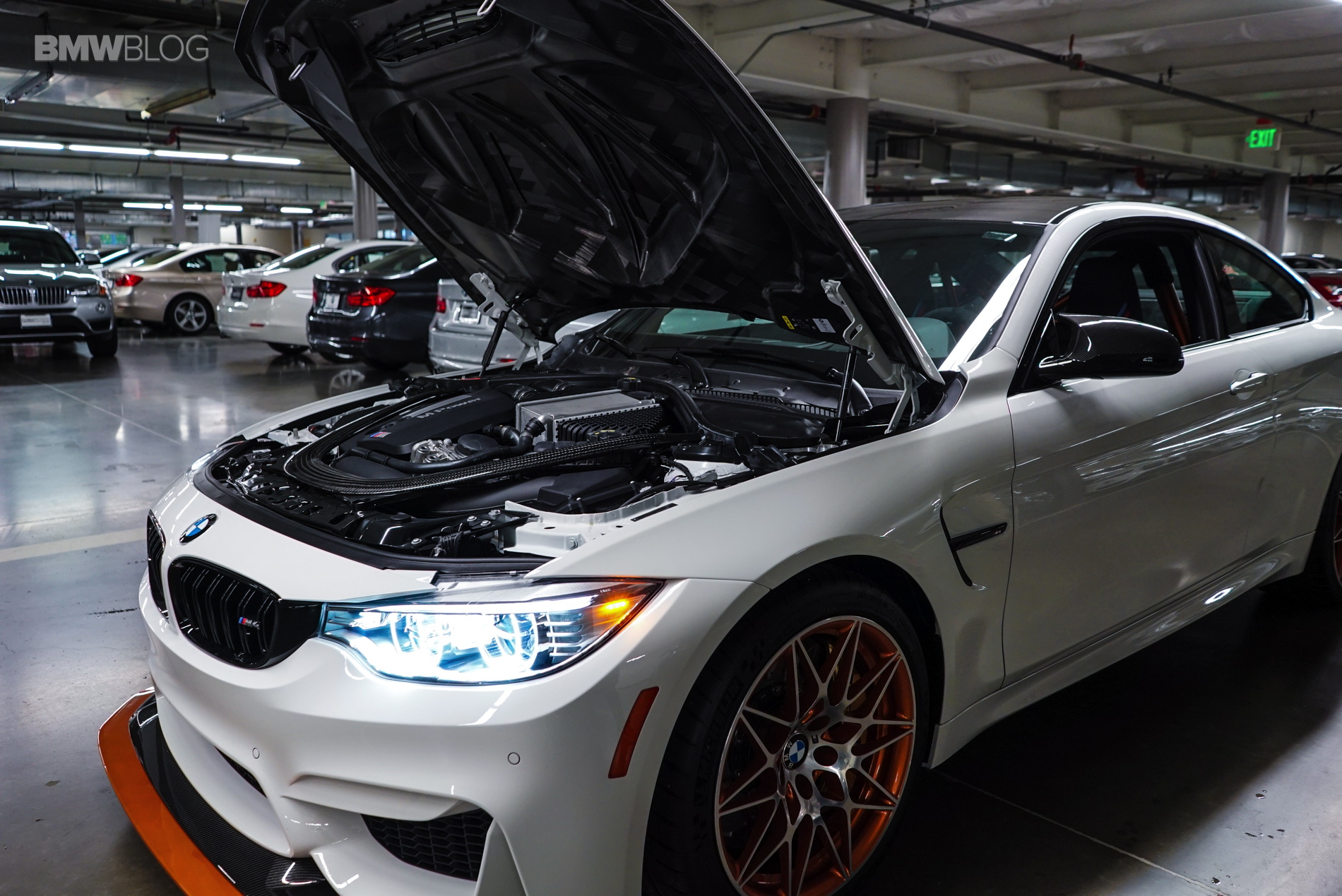 BMW went to town with the carbon treatment starting with the carbon-ceramic brakes, which come as standard. They also made sure that the hood, roof, driveshaft and strut brace were all carbon fiber too. Lastly, because it’s not trying to be a wolf in sheep’s clothing, but rather a very obvious, orange-clad aero-packing wolf, it comes with an adjustable front splitter and rear wing, which are also made of carbon fiber.