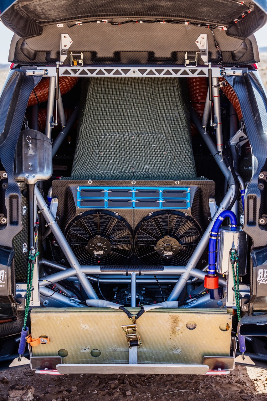 Under the body you’ll find three spare wheels along with two hydraulic jacks that can be operated from inside the cabin. Furthermore, the subframe was constructed from tubular steel to aerospace standards. Designed specifically for the demands of cross-country racing, the frame is constructed to exacting standards by CP Autosport. What makes this even more special is the fact that MINI Motorsport partner X-raid devised this subframe to be removable. Such is the design of the chassis and the new subframe; complete engine removal, if required, can be completed in just over one hour.