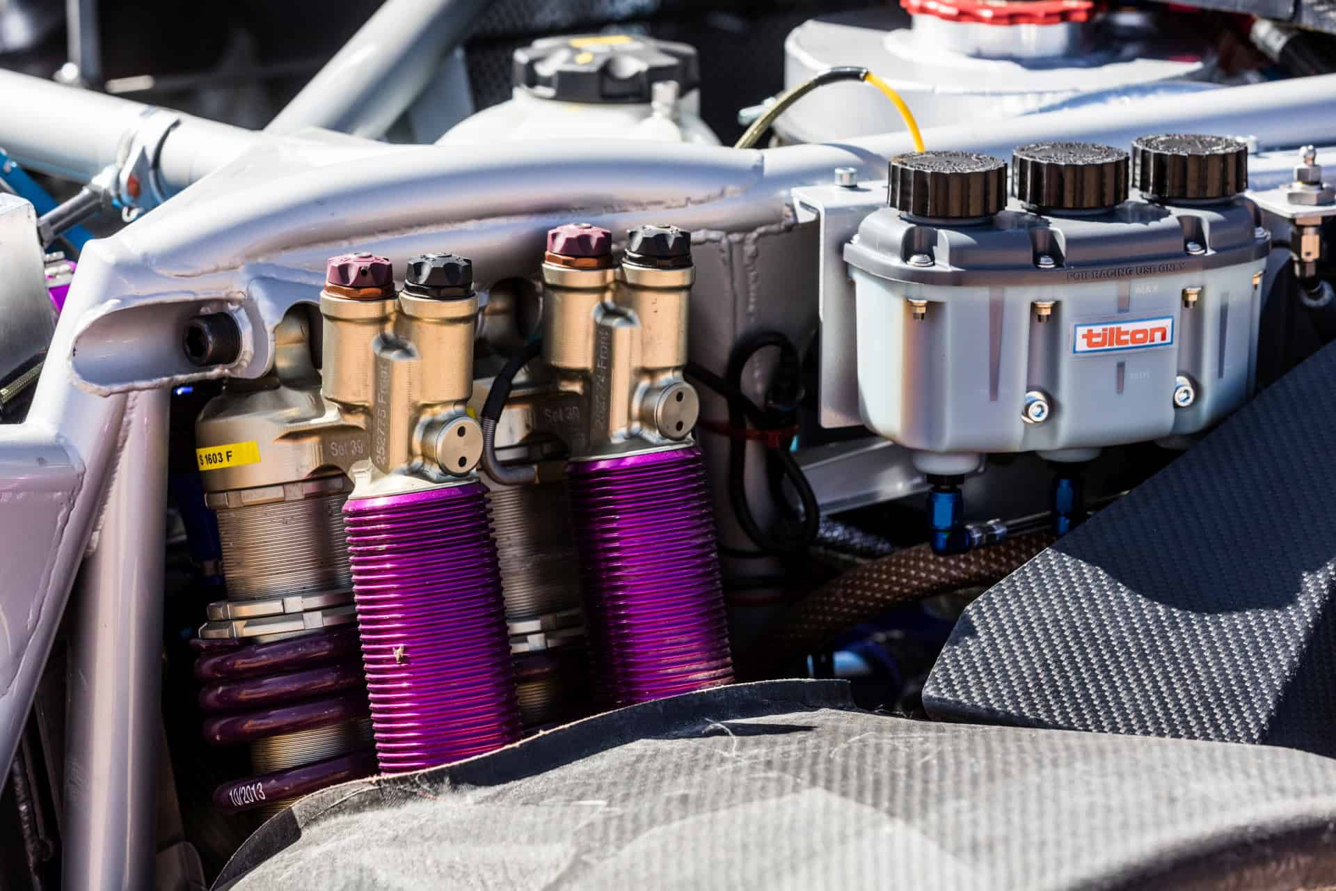 Suspension is provided by specialists Reiger Racing Suspension. Each axle rides on four fully adjustable suspension units (two per wheel) providing the permissible 250mm wheel travel. Six-piston calipers all-round act on 320mm vented steel discs. To ensure consistent braking performance while under the stress of racing conditions for hours on end in high ambient temperatures, the rear brake calipers are air and water-cooled.