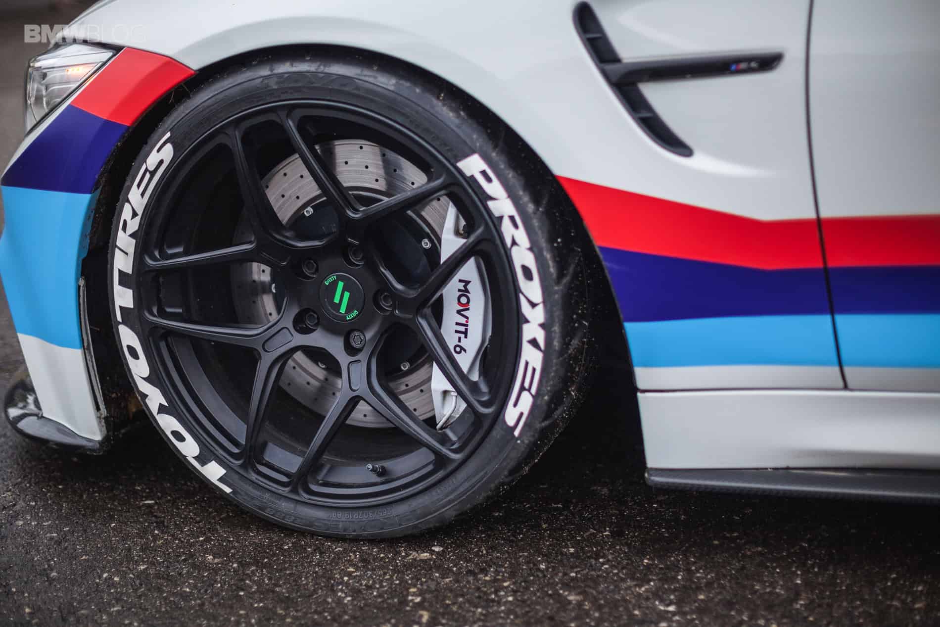 A 14-disc clutch from Dodson Motorsport replaces the original component, which, given the torque measured, would not even have survived the test run. The Mov’it brake (front axle: 6-piston saddles, 392 mm friction rings, rear axle: 4-piston saddles, 380 mm friction rings) guarantees adequate deceleration, while the Bilstein B16 EDC suspension keeps the M4R on course. The combination of 19’’ 6sixty forged wheels as well as Proxes R888R Semislicks (265/30/R19; 305/30/R19) from Toyo Tires ensures the needed traction.