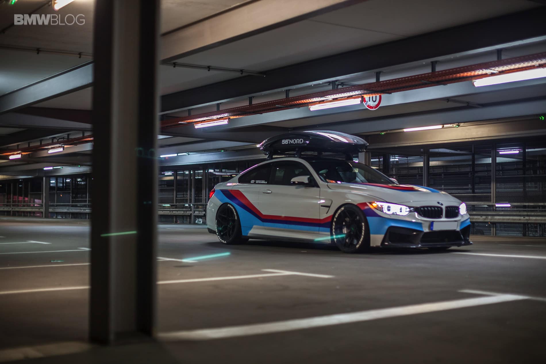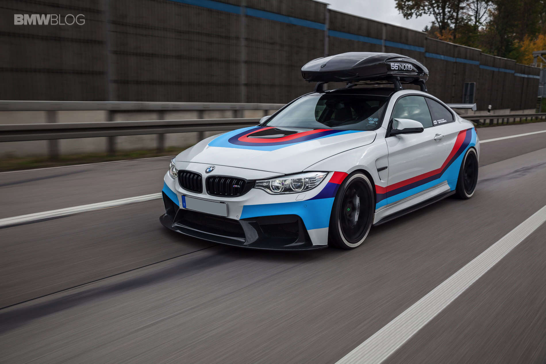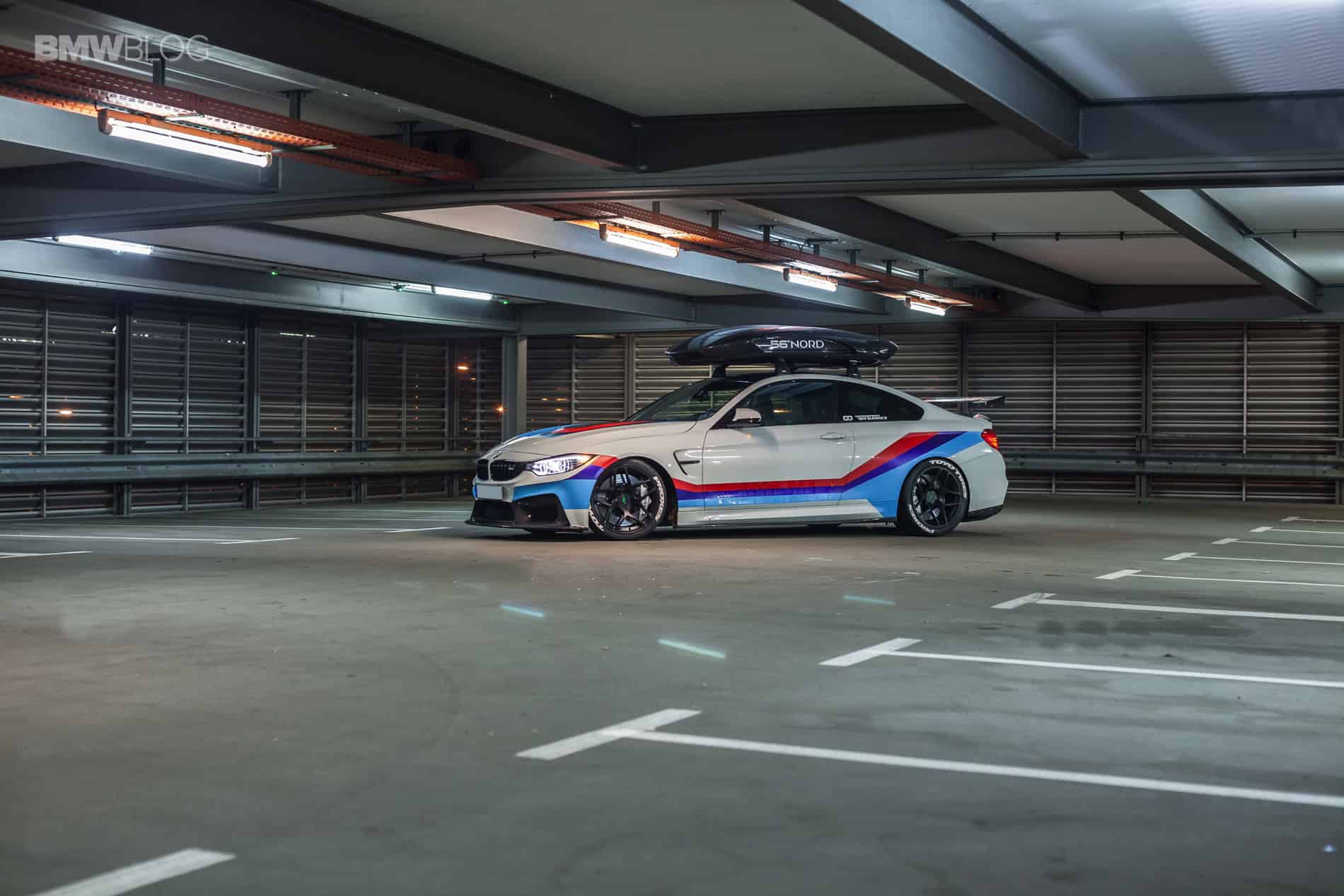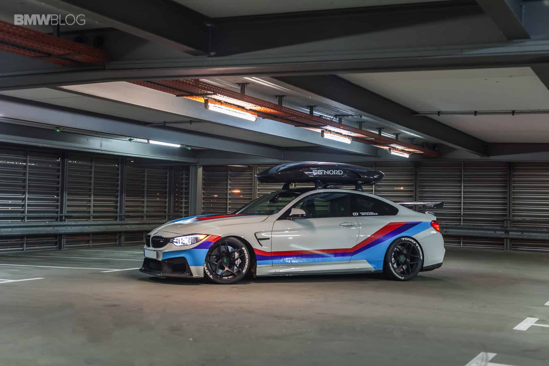 The 56°NORD carbon roof box has been tested at speeds of up to 300 km/h, and has a capacity of 405 liters and a unique 300-degree unobstructed access. The whole optics are rounded off by a GT4-style wrapping from Revowrap, which illustrates the racing ambitions.