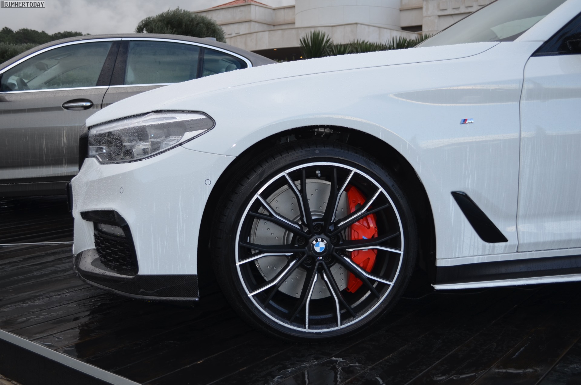 Also from a technical point of view, there are good reasons for the intensified look of the M Performance 5 Series, because besides the design, there are also some aerodynamic optimizations. Behind the 20-inch light-alloy wheels, a high-performance braking system is installed at the front, which makes sense for sporty drivers.