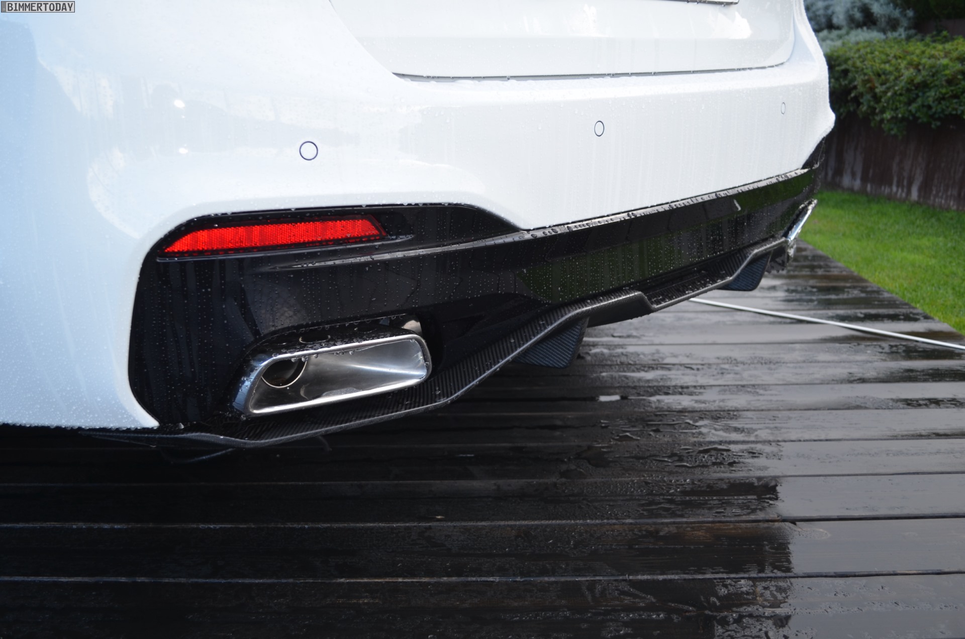 In just a few days we will get behind the wheel of the new BMW 5 Series, but in the mean time, we’re bringing you a new set of photos illustrating the middle class sedan with its M Performance Parts program. In the rain there was a BMW 540i, with its sportive-aggressive appearance and plenty of carbon fiber parts that beautifully contrast with the Alpine White color.