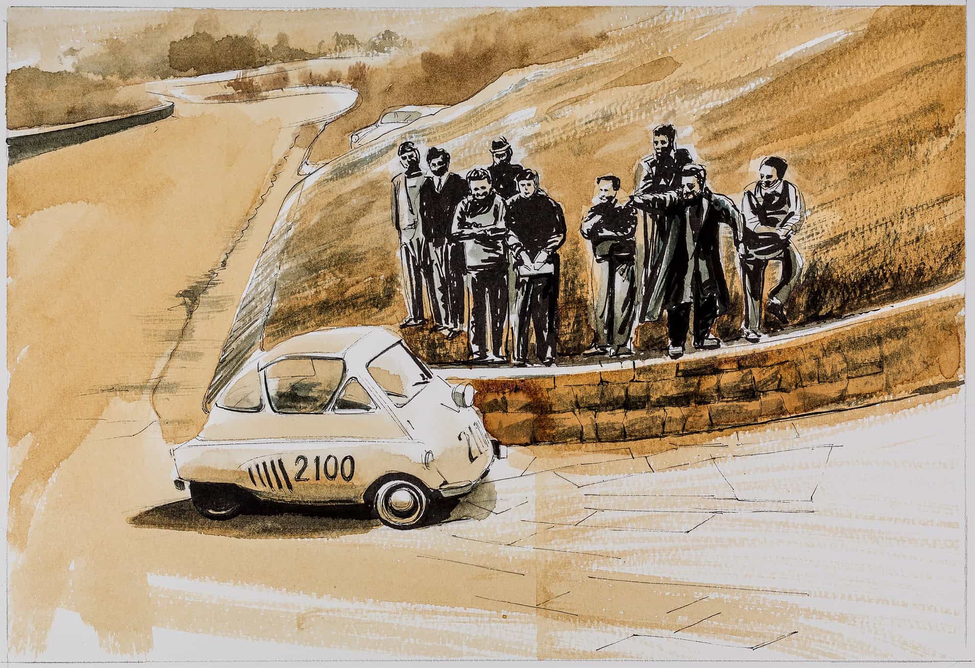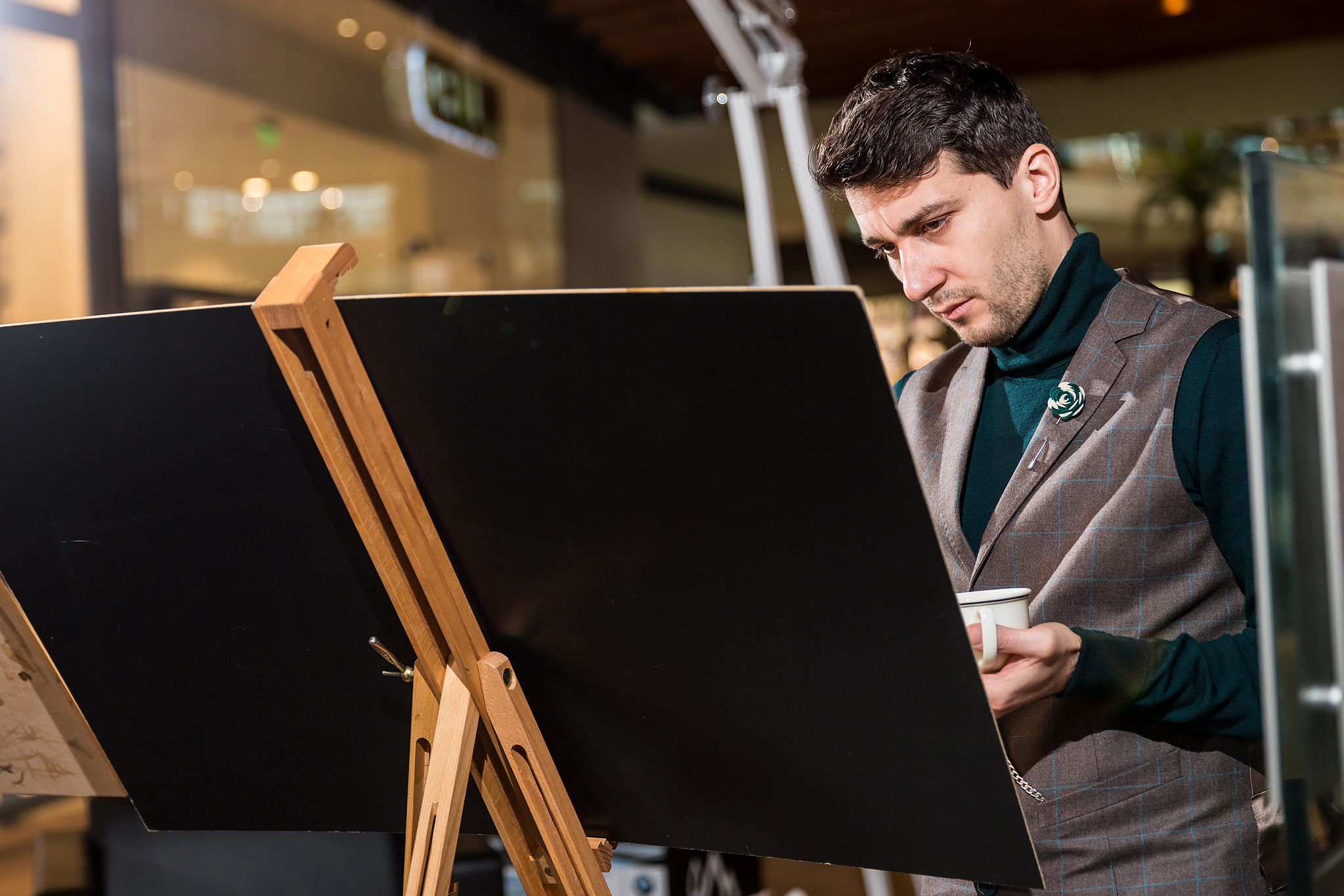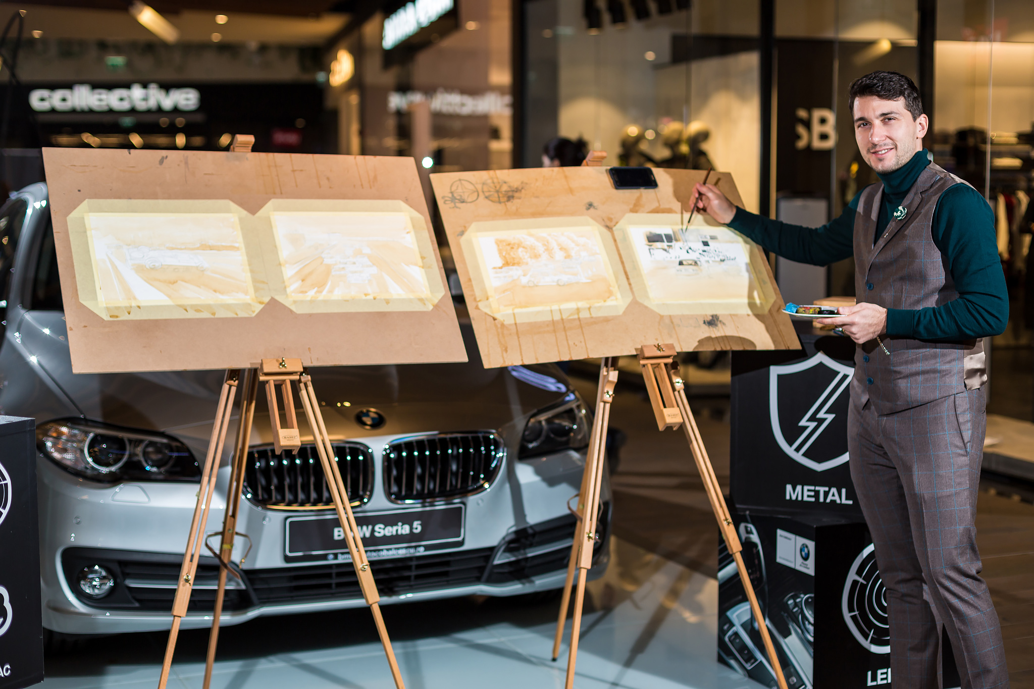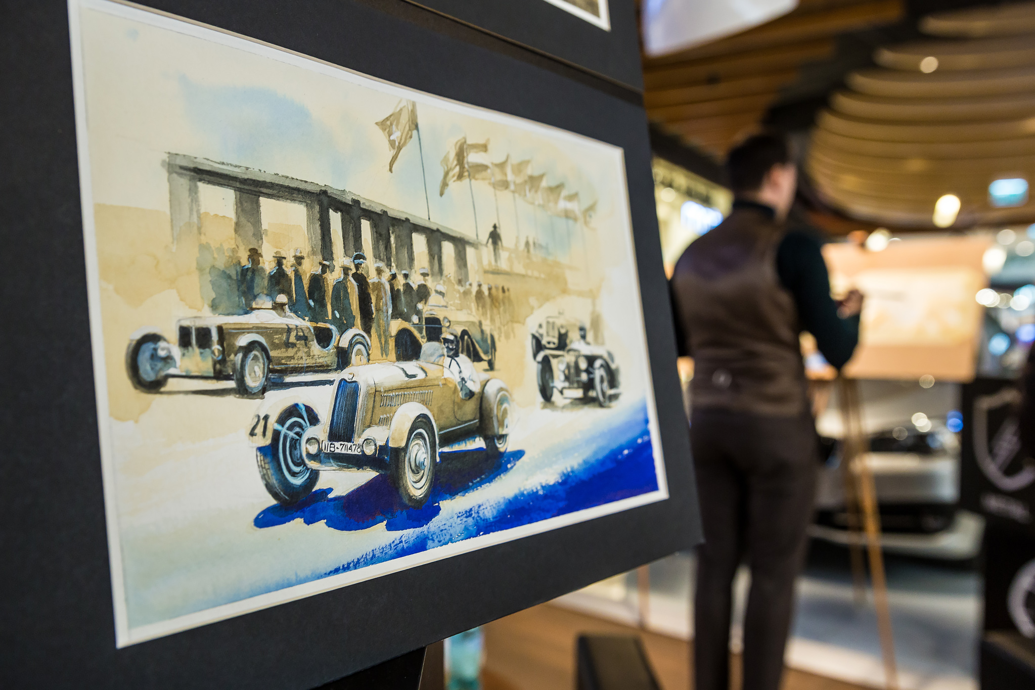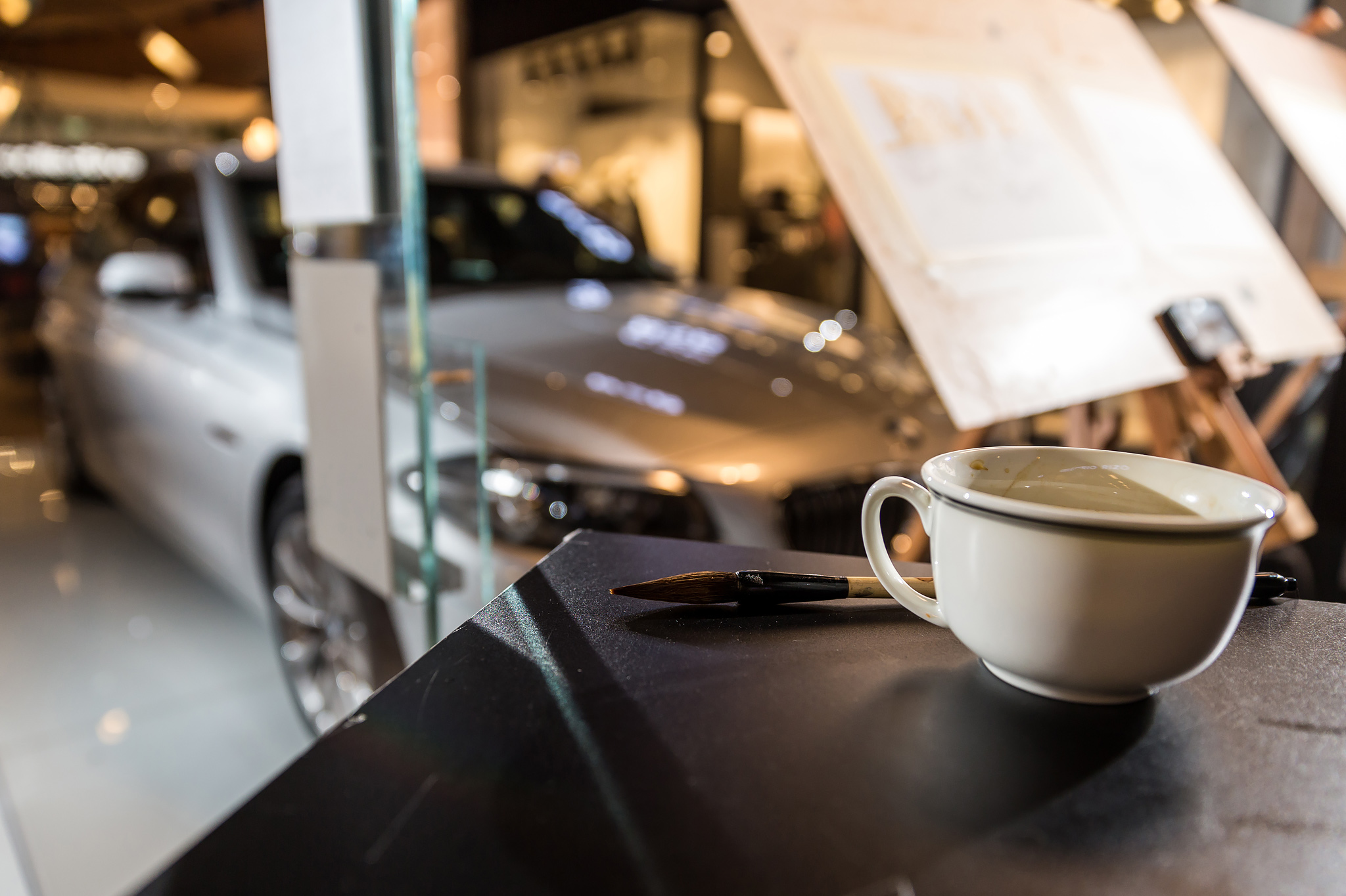 He set out to draw pictures from BMW’s 100-year history on November 7th and over the next 30 days his goal was to complete the 100 pictures so that they can be showed in a special exhibition for fans and curious bystanders at the same time. Furthermore, a choice was made that he would do so while surrounded by people and BMW models altogether, in one of the biggest shopping malls in Europe at the moment.