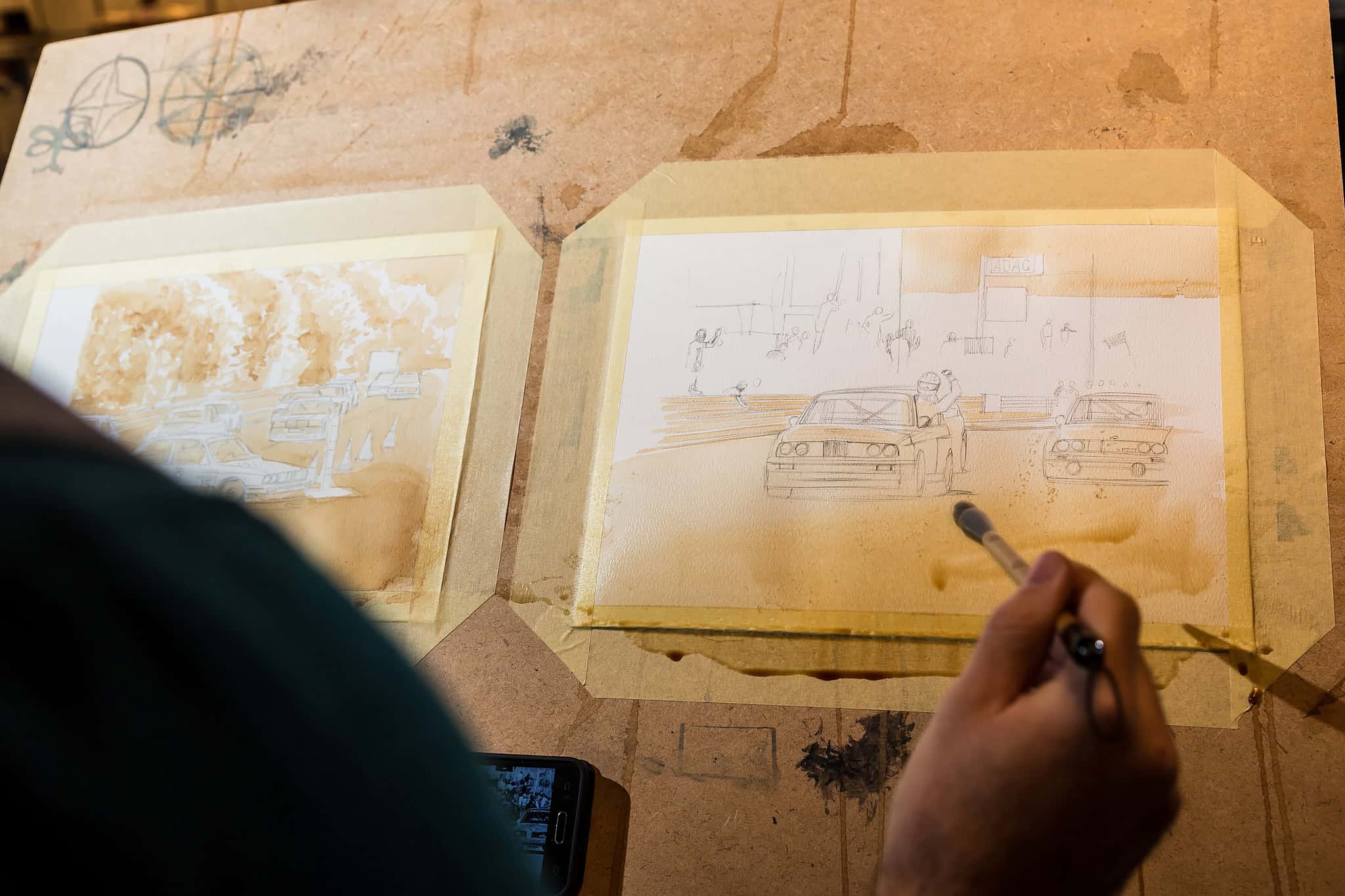 As faith would have it, he lived near an art school where he perfected his art of drawing. Move forward several years, and now he’s working with BMW to bring us 100 paintings in 30 days.