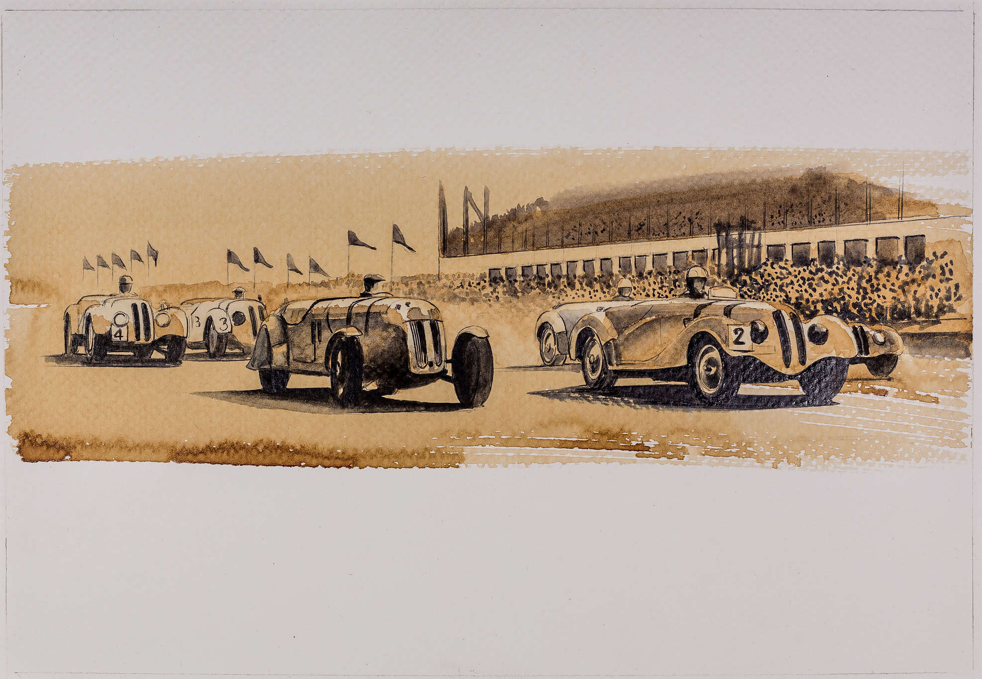 Starting from an idea thrown in the mix during one of the many brainstorming meetings held at their office, the local representatives of the brand decided to put together an ambitious and yet unique project in the world. Their concept was to create a collection of 100 paintings of iconic photos from BMW’s motorsport history and showcase them to the world with three goals in their mind.