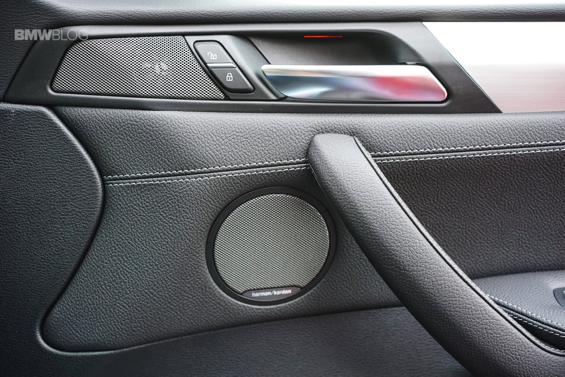 On the inside, black Nevada leather greeted us and paired well with the brushed aluminum trim. A Harman Kardon surround sound system is also standard and includes 16 speakers and a 600-watt digital amplifier. The door sills, steering-wheel, foot-rest, shifter and even the digital instrument cluster remind you that this X4 is special and of M-descent and therefore have M logos adorning them.