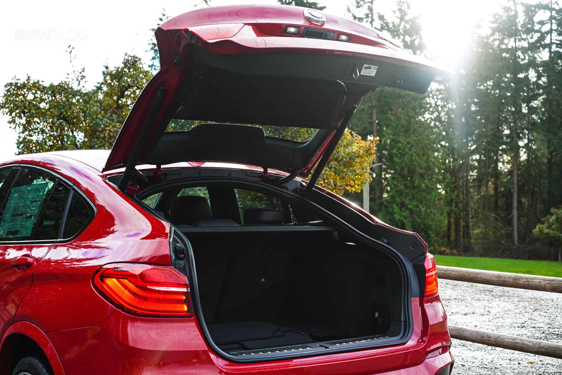 En-route to Redmond we spot a nice large parking lot with a nicely manicured soccer field and park. Might as well pull in and snap some shots since the rain stopped and the sun decided to show its face. We open up all the doors, the trunk, and the hood. As we’re snapping shots we talk about practicality and how useful this vehicle would really be, day in and day out. As mentioned earlier, the rear seats fold down. Cargo volume is 17.7 ft³, 49.4 ft³ with seat area. So unless you’re helping grandma move her old world, massive antique closet, there’s more than enough space for your every-day carrying needs. From IKEA furniture runs to mulch, tiles and sandbag outings from Home Depot. Skis, snowboards, soccer balls, and tents. You’re covered. One thing to keep in mind however is that there is no 3rd row seating option for any of the X4 models offered.