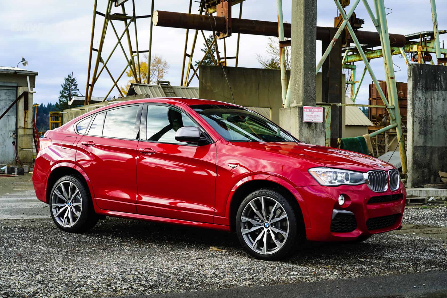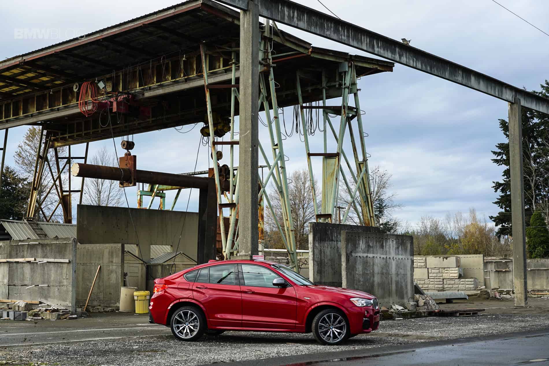 We leave the park and head for the industrial zone. Once we get there, I park next to a large gravel mound, step outside and stare at the stark yet awesome contrast of conflicting visuals. On the one hand, we have a brand new Bavarian engineered Sports Activity Coupe dressed in sleek lines and red paint. On the other hand we have semi-standing concrete walls, a crane, huge dirt and gravel mounds, and massive pot holes full of rain water and debris. In theory, it shouldn’t matter what the X4 looks like. It has “Activity” in its name, and with 8” of ground clearance, as long as we don’t try to actually scale the gravel mounds, we should be golden. And we are golden. Mostly because no off-road testing was done. The extent of this location was to see how it dealt with semi-paved roads (answer: it didn’t really like it) and also to get some freeway miles under our belts in the X4. Let’s be serious, 20 inch M light alloy wheels do not do well in these conditions! If you’re looking at the X4 M40i for serious off-roading, consider skipping the large wheels. Or if your budget allows, get the 20 inch wheels but install a set of proper off-road wheels and tires when you’re really looking at pushing the “Activity” envelope.