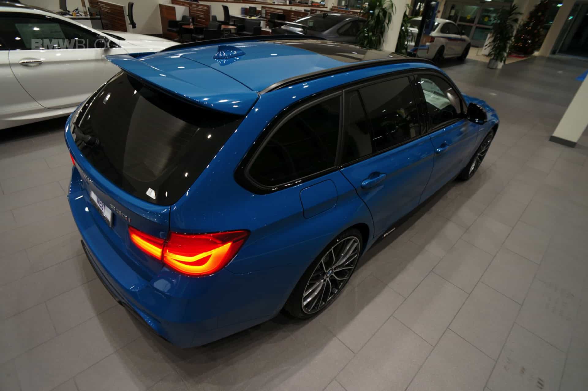 Marino went to the BMW Performance Parts catalog and up came a set of 20” Style 405 M-Performance wheels to complete the external appearance from the factory. As ‘cake-topping’ this 330i xDrive sports Black Performance Grills, Rear Diffuser, Carbon Fiber Mirror Caps, Carbon Fiber Selector Lever and interior trim, M-Performance Rocker Decals, Performance Front Splitter, Rear Spoiler, M-Performance Illuminated Door Sills and LED door-projectors.