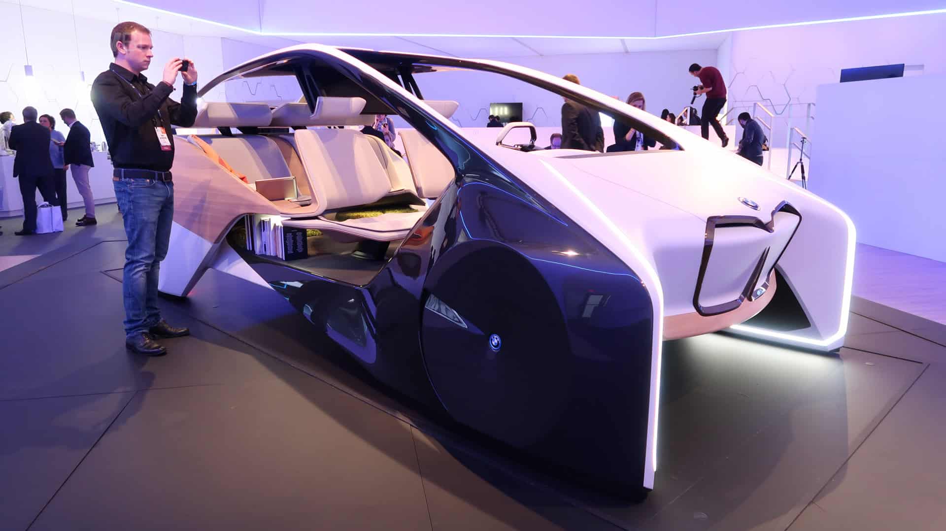 BMW used a clearly non-moving automobile concept to unveil their HoloActive Touch. The concept car is a four seat piece of furniture without doors. It had twin kidney grills at the front and LED light bars, and 6 Roundels. It almost seems to be made with input from Ikea, as it was made of black and white plastic, natural wood and white laminate material. During the demonstration BMW talked about how it the concept’s design was a possible solution to the challenge of integrating a living room style area with an automobile.