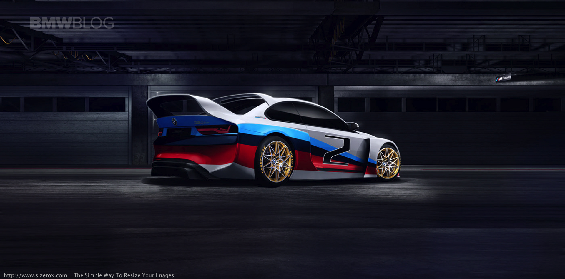 Just like the BMW concepts, this rendering shows a racing car with the typical wide fenders and an aggressive front fascia enhanced by a spoiler and air intakes to help cool the powerful engine. The rear-end also features wide hips, covering the large tires usually found on racing cars. On the trunk lies a massive racing wing, while the lower area sports a two-part carbon fiber diffuser. A roof spoiler also helps increase downforce giving the car a sportier behavior on the track.