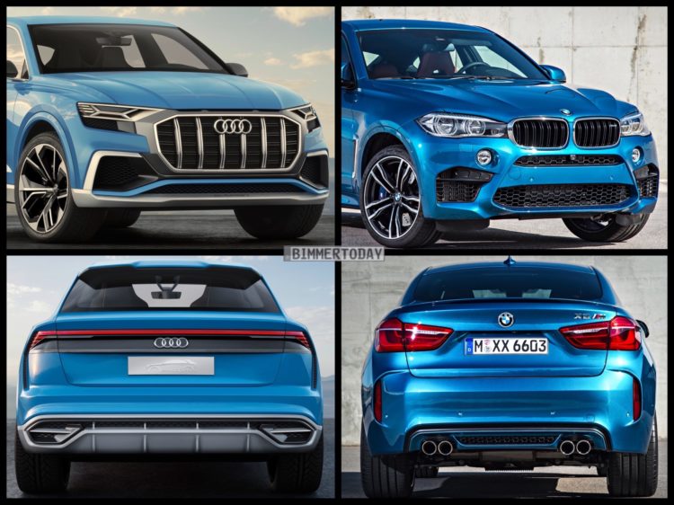 We’ve just seen the latest concept SUV from Audi, the Audi Q8, at the Detroit Auto Show. It packs a hybrid powertrain that develops a total system output of 442 hp and 516 lb-ft of torque, the Q8 is capable of getting from 0-60 in 5.4 seconds. That’s pretty impressive for a two-ton hybrid SUV and it will pack incredible technology as well. Plus, it looks funky, which is cool. But BMW has its own fast and funky looking SUV, the BMW X6 M. So let’s take a look at how these two compare.