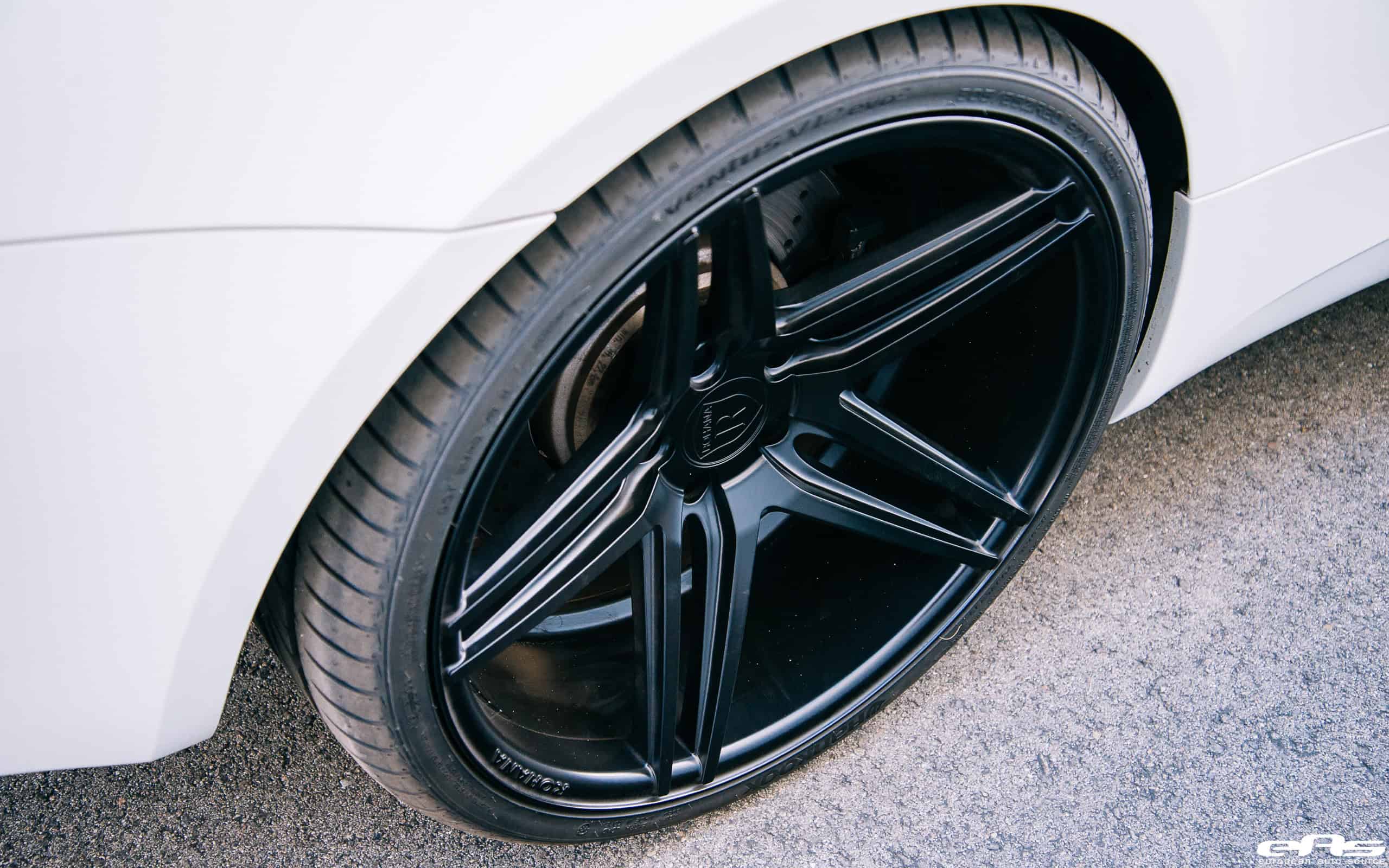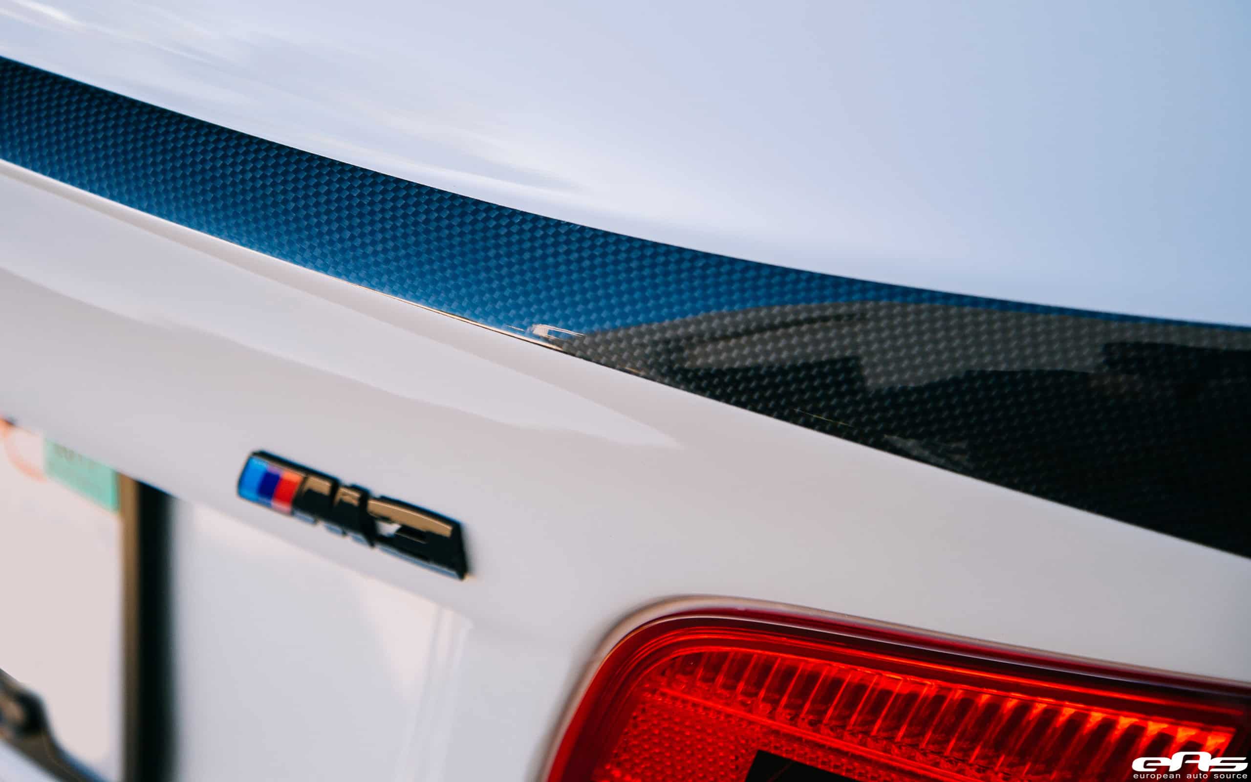 Additionally, a Vorsteiner carbon fiber front lip spoiler, a carbon fiber rear diffuser and the carbon fiber bootlid, make the perfect contrasting additions for this Alpine White BMW M3 as well. The vehicle also features a complete Vorsteiner titanium exhaust installed, giving it a much deeper rumble coming out of the quad exhaust pipes in the rear. The addition of Rohana RC8 wheels is a great additional to perfect the exterior looks, giving the M3 a unique black and white look, fitting on this vehicle.