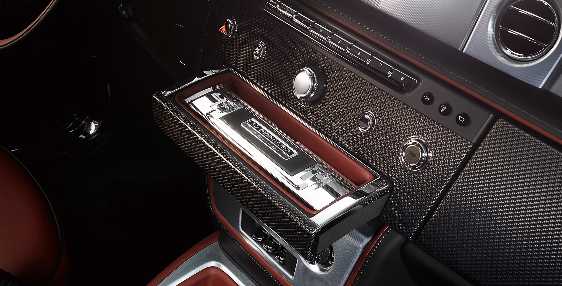 One of the final Bespoke commissions of the seventh generation Phantom Extended Wheelbase was crafted for a Vietnamese entrepreneur, showcasing the ingenuity and application of the marque’s craftspeople through the art of embroidery. In this instance they exquisitely replicate the pattern of tiger fur in the rear centre console. Beyond that, this stunning example features a wealth of unique interior fittings, echoed with a subtle gold coachline and motifs on the Madeira Red exterior. The cabin of this Phantom is furnished in a two-tone design of Moccasin and Fawn Brown leather, and is embellished with multiple personalized motifs stitched into the hide and laid into the veneer, all by hand. Bespoke white instrument dials contrast with a Consort Red steering wheel rim – elegantly expressing the breadth of color palette at the disposal of the marque’s patrons when creating truly unique Bespoke commissions.