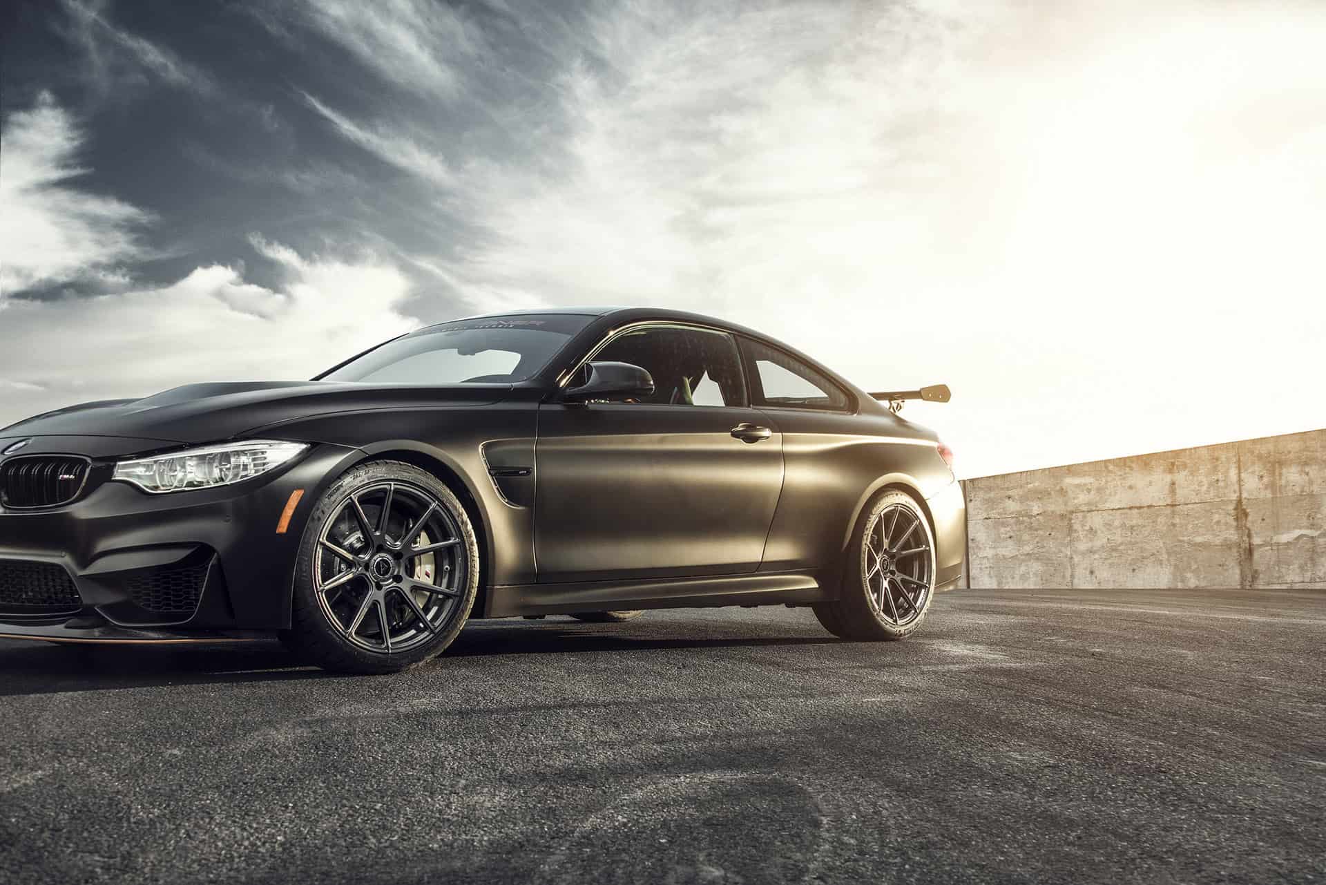 This BMW M4 GTS features wheels sized 20×9.5 in the front and 20×10.5 in the rear, respectively. Vorsteiner chose to adorn these wheels with a Carbon Graphite finish.