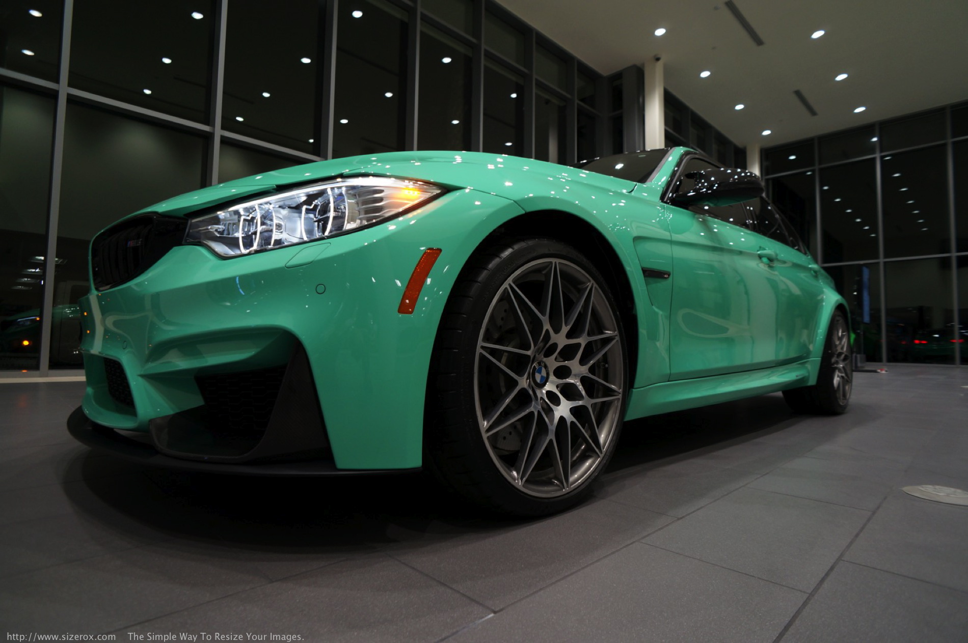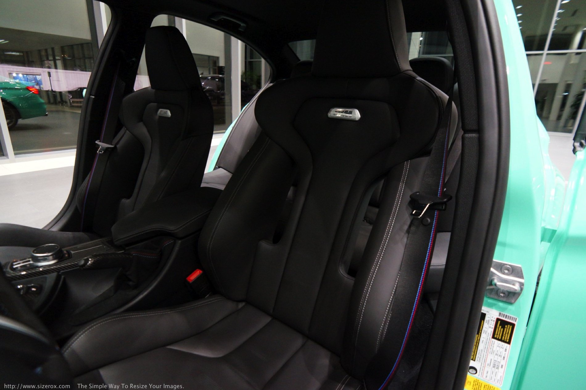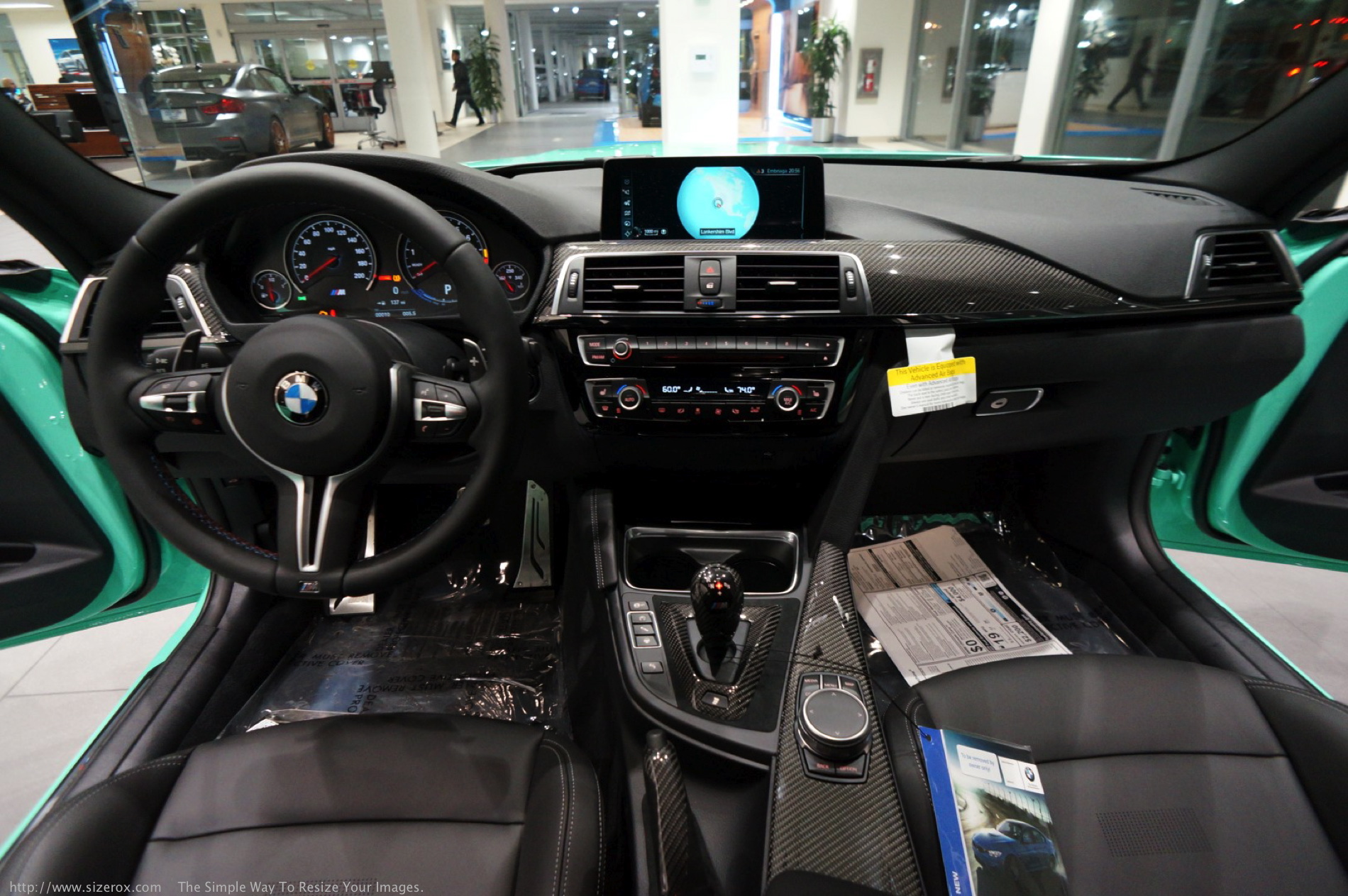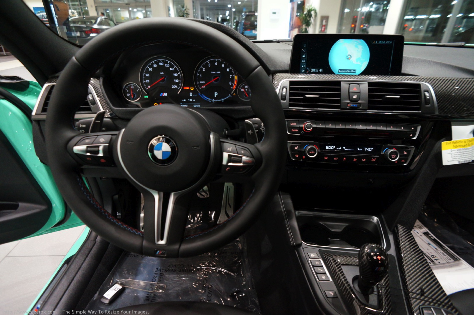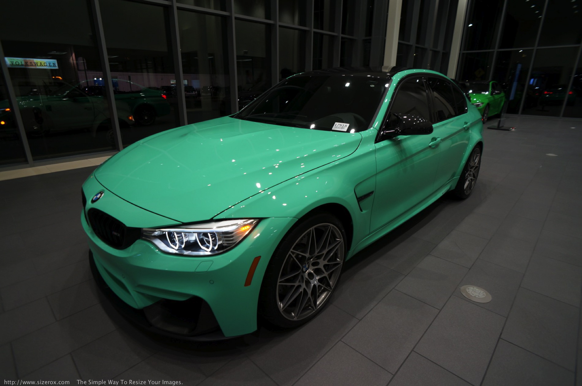 Marino threw everything that the BMW Performance Parts catalog had to offer, at this M3. Carbon Fiber Everywhere: front aero splitter, rear diffuser, rear trunk-lid spoiler, exhaust tips, mirror covers and interior trim. M-Performance exhaust, stainless pedals, Performance Analyzer (IOS & Android), LED door projectors—in short the proverbial “kitchen sink”. All of these performance goodies and individual paint sit on top of the factory Competition Package with the Style 666 20” wheels, M-DCT transmission, Executive Package, Drivers Assistance Package, Lighting Package, Apple Car-Play Compatibility and a plethora of other options and standard features.