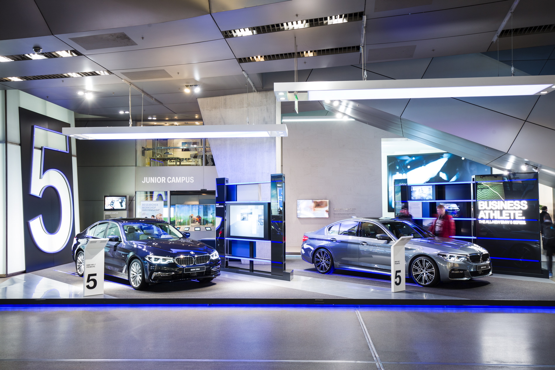 Saturday saw the launch of the new BMW 5 Series sedan. At the same time, BMW Welt is devoting an exclusive special exhibition to the world’s most success business sedan. Visitors have the opportunity not only to see two models up close but also to experience the new technical features at interactive stations. And film fans have the chance to view the new BMW film “The Escape” and see the actual car used in the film along with several props.