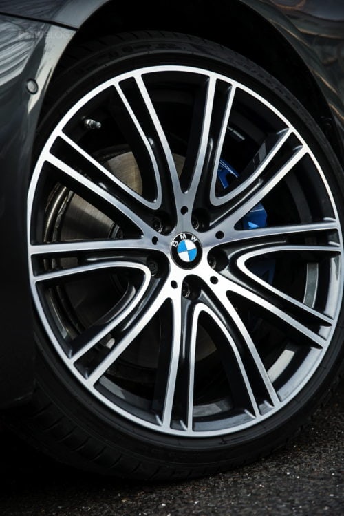 The M Sport package includes sports heated seats and a specific cover made, an M Sports leather steering wheel, aluminum trim and some specific details such as the illuminated M entry rails. The exterior changes include an M Aerodynamic package – front apron with larger air intakes, side skirt trim, a diffusor-style rear apron and an exhaust system with two rectangular tailpipes- lowered M Sport suspension and M light-alloy wheels, in either 18″ or 19″.