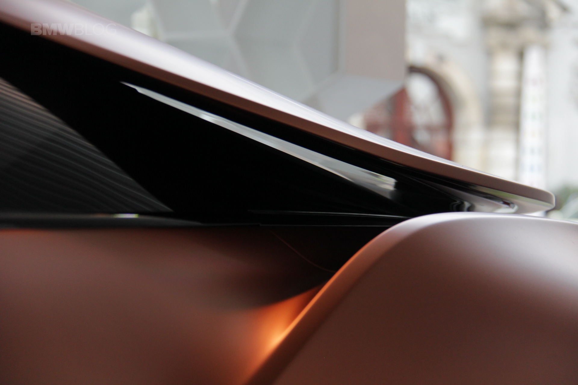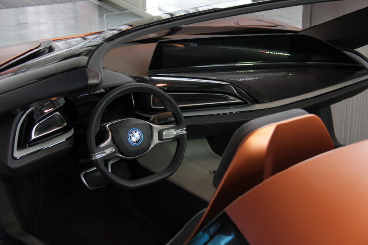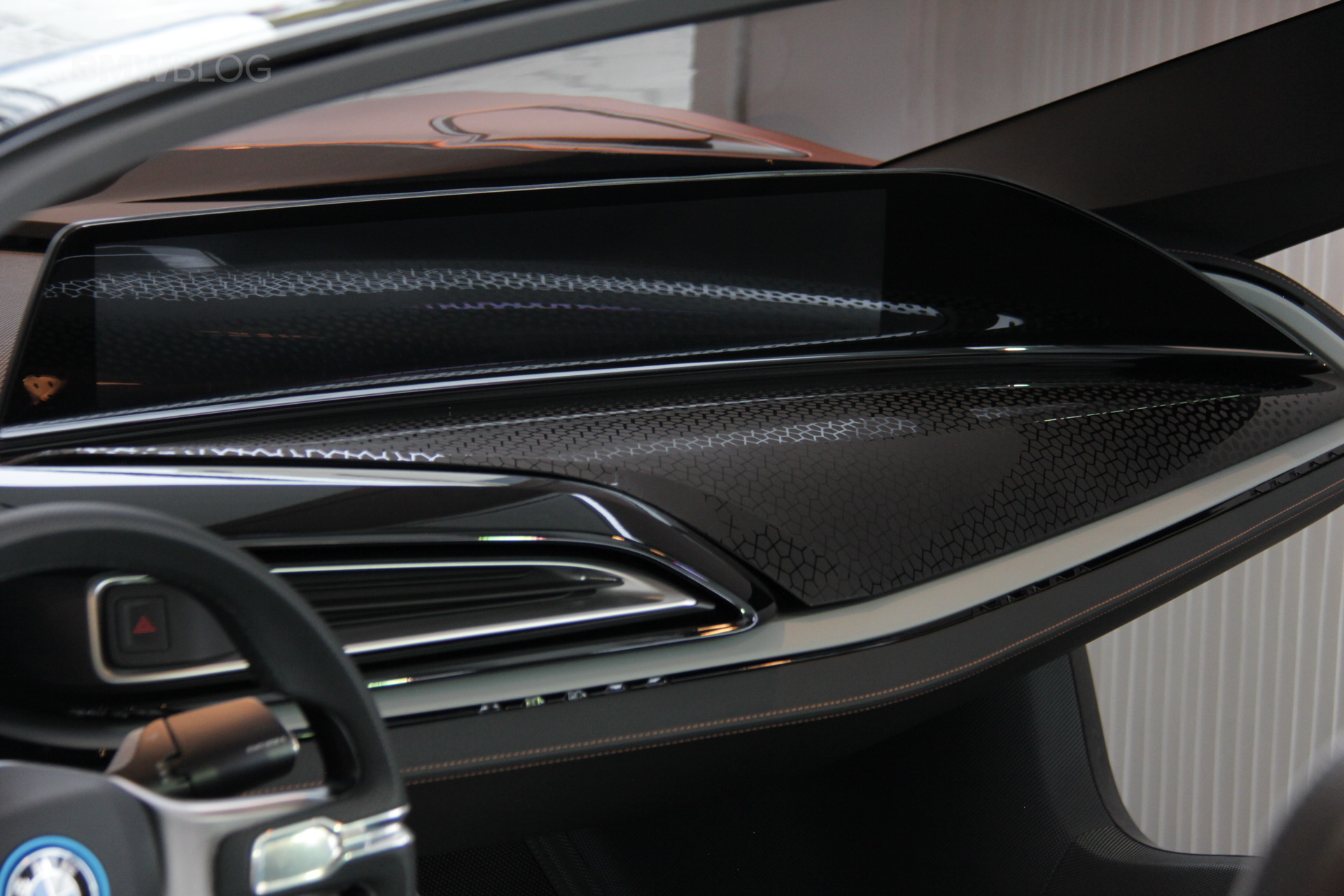 The BMW i Vision Future Interaction is based on the BMW i8 Concept Sypder. Connectivity, autonomous driving and hybrid performance are the buzzwords of the concept. This car showcases nothing less than the interior of the future. A big 21-inch display dominates the dashboard and extends over almost the entire passenger side. Sensors in front of the display recognize hand movements. The driver (or passenger) operates the display just like a touchscreen. However, the screen doesn’t need to be touched. BMW calls this feature AirTouch.