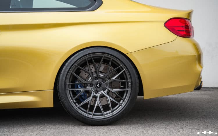 For this Austin Yellow BMW M4, the wheels come in sizes of 20×8.5 and 20×10.5 in the front and rear, respectively. The Carbon Graphite finish adorns the lightweight product, giving the striking contrasting look for this vehicle. The wheels were installed by European Auto Source. Check out the complete photoshoot of this build right below.