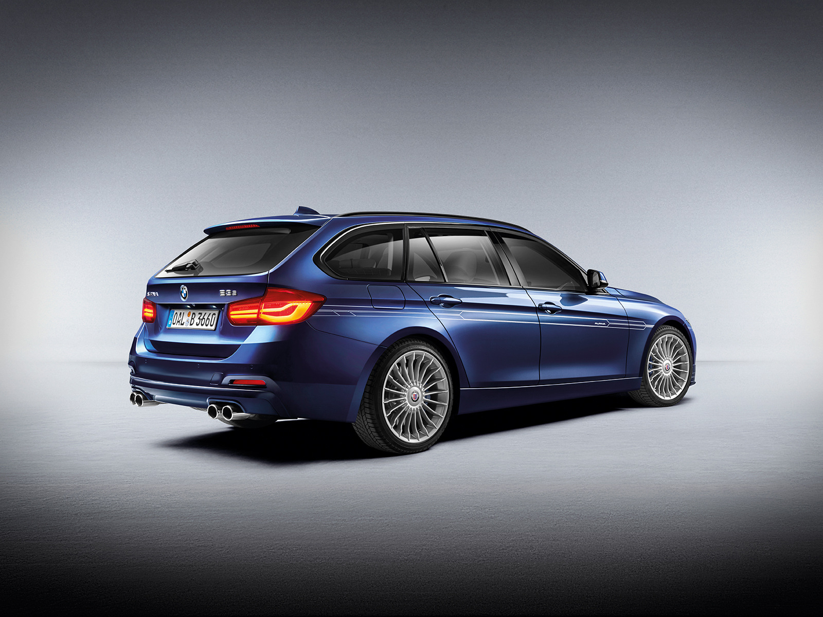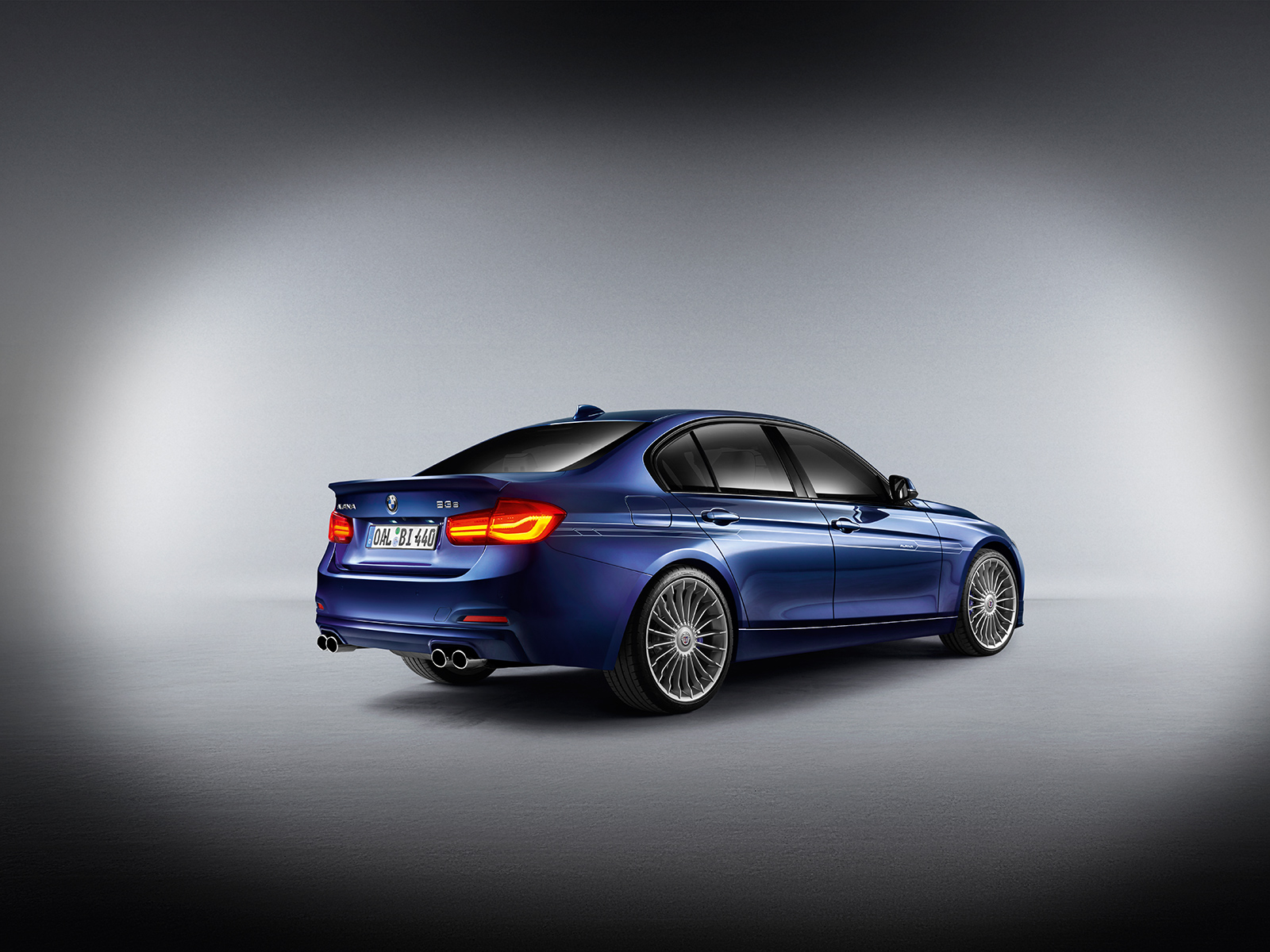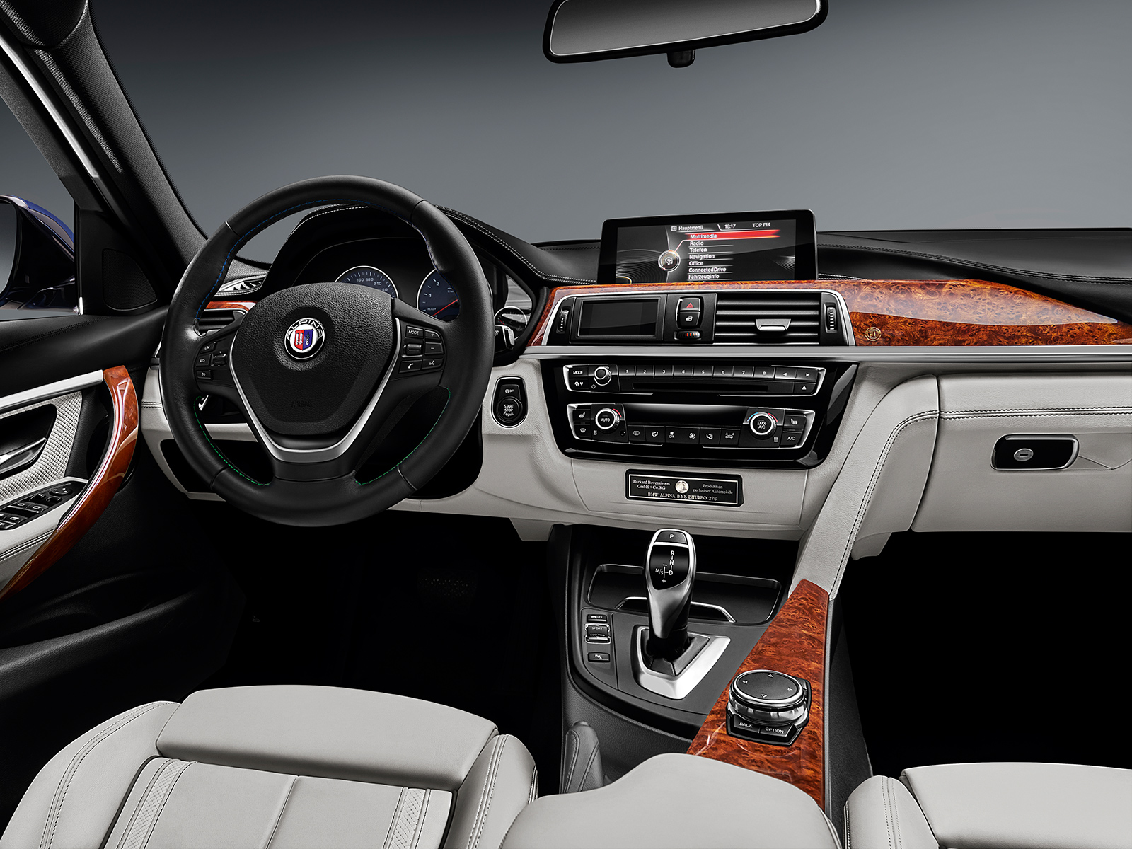 The BMW ALPINA B3 S Bi-Turbo is characterized by a subtle yet powerful appearance. The front spoiler and chrome kidney grill underline the powerful presence of the BMW ALPINA B3 S Bi-Turbo on the road, hinting at its athletic pedigree and extraordinary performance. The standard LED headlights and LED fog lights are highly efficient, provide maximum road illumination and lend the BMW ALPINA B3 S Bi-Turbo its unmistakable appearance. A stainless steel exhaust system, developed in collaboration with AkrapoviÄŤ, features two trademark elliptical twin tailpipes which are elegantly integrated into the rear valence. Above, the taillights shine in the iconic BMW LED design. Superior material quality and refined interior design elements go hand-in-hand with an extended standard equipment level which includes Leather Dakota, Sport Seats with electric seat adjustment and Park Distance Control.