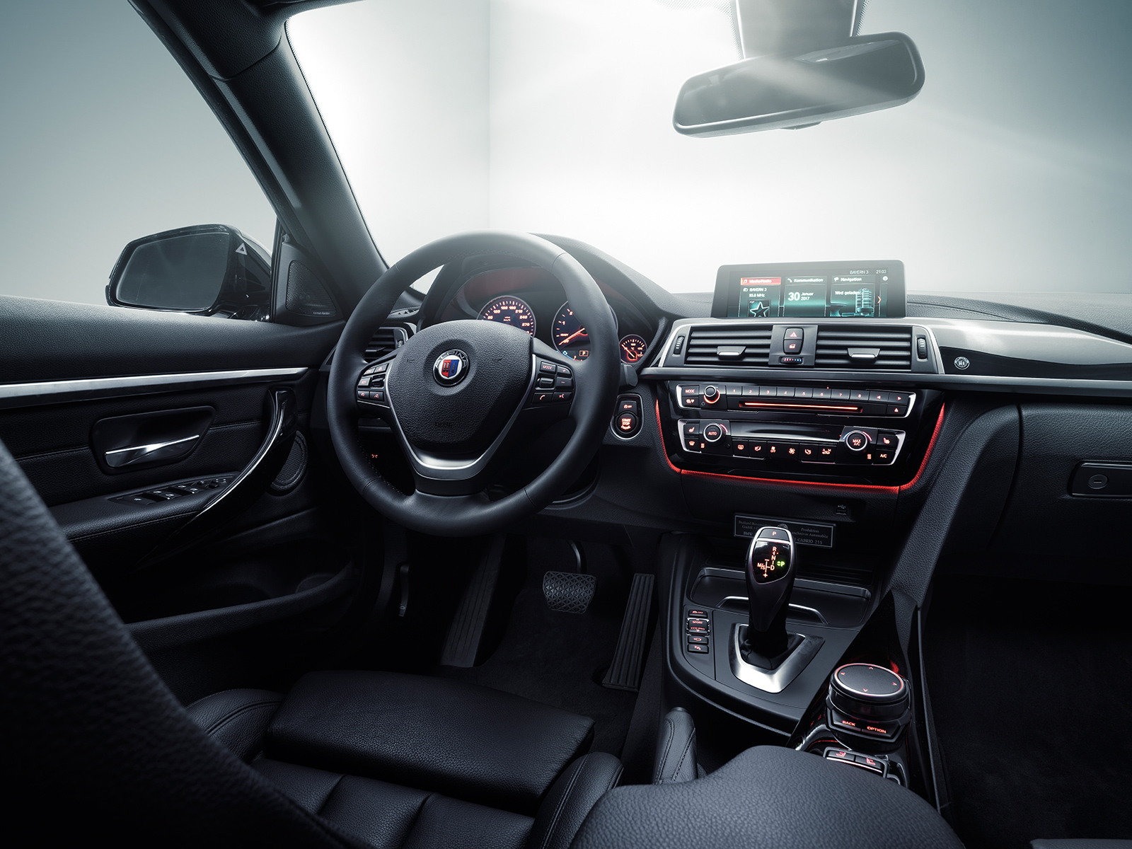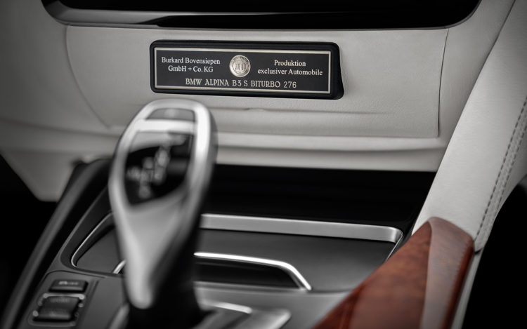 Small and stylish details round off the identity of every interior. This includes the door sills, metal emblems in the seat backrests and in the floor mats, and of course the exclusive production plaque with model-specific build number. In combination with a BMW upholstery there are a host of additional design possibilities and individualisation options, for example classic ALPINA diagonal rhomb applications in the seat backrests, embossings and other decorative elements.
