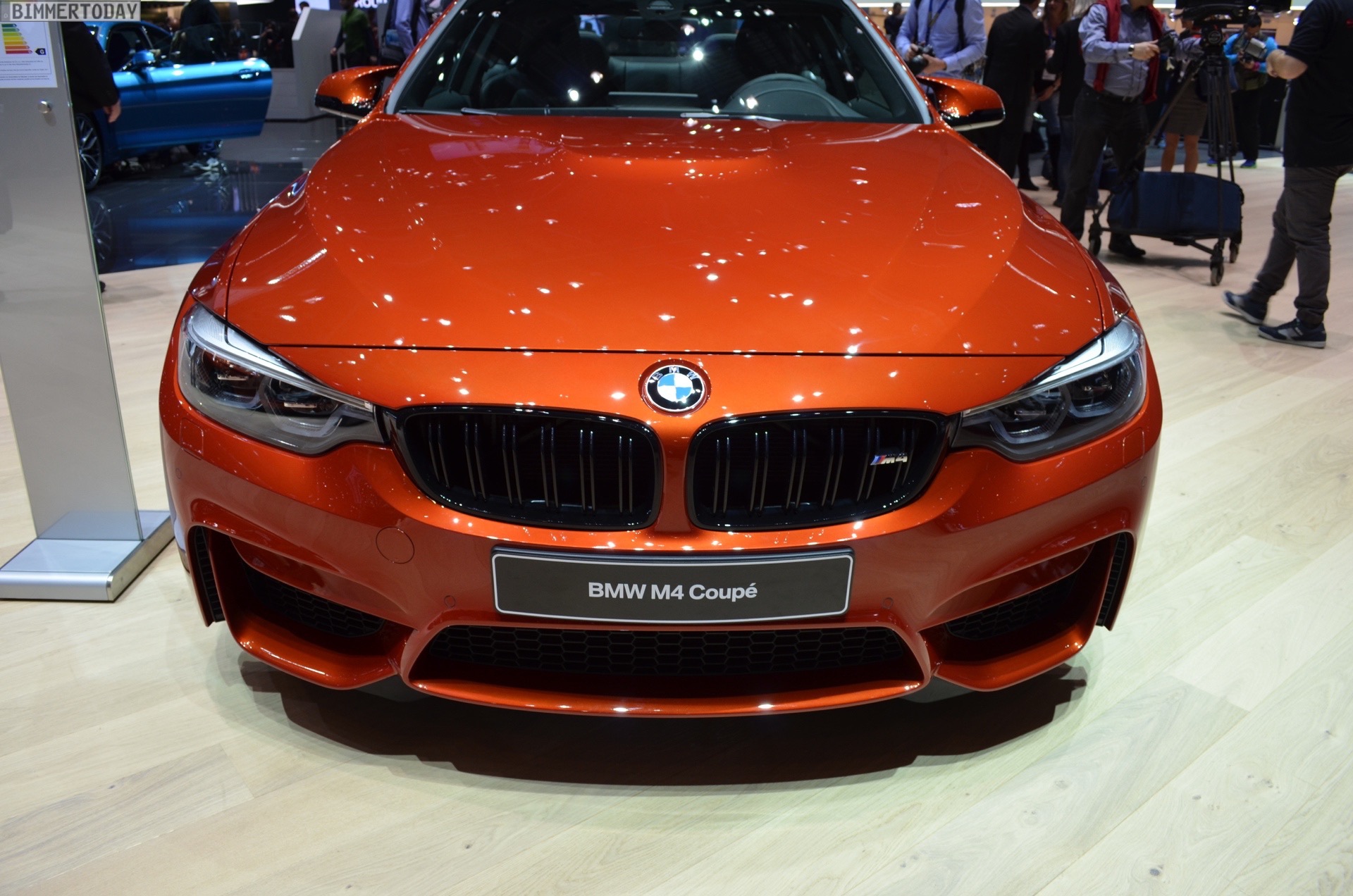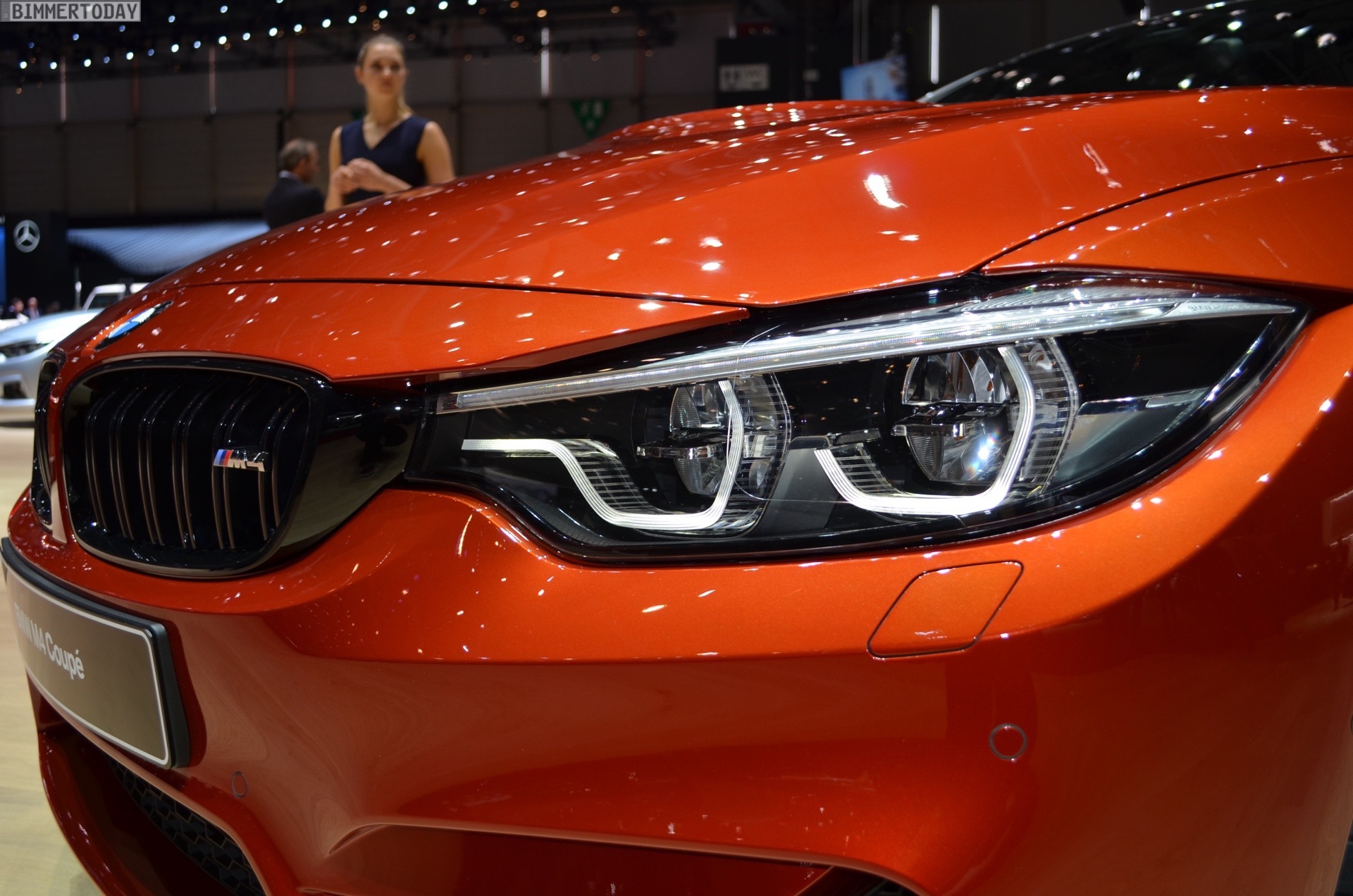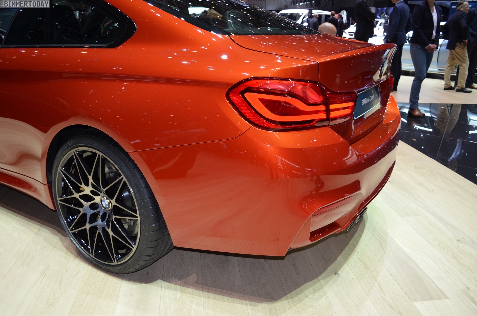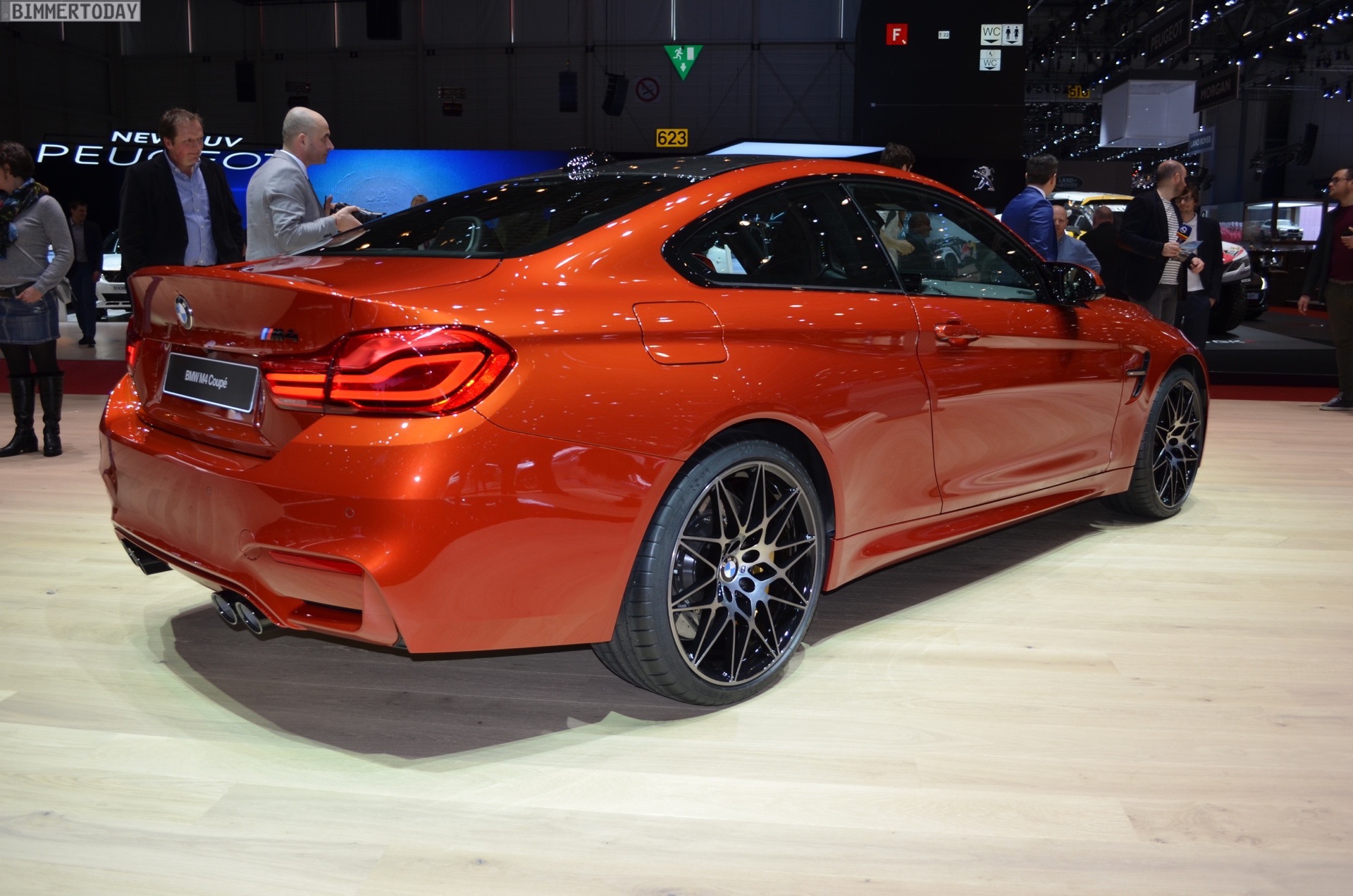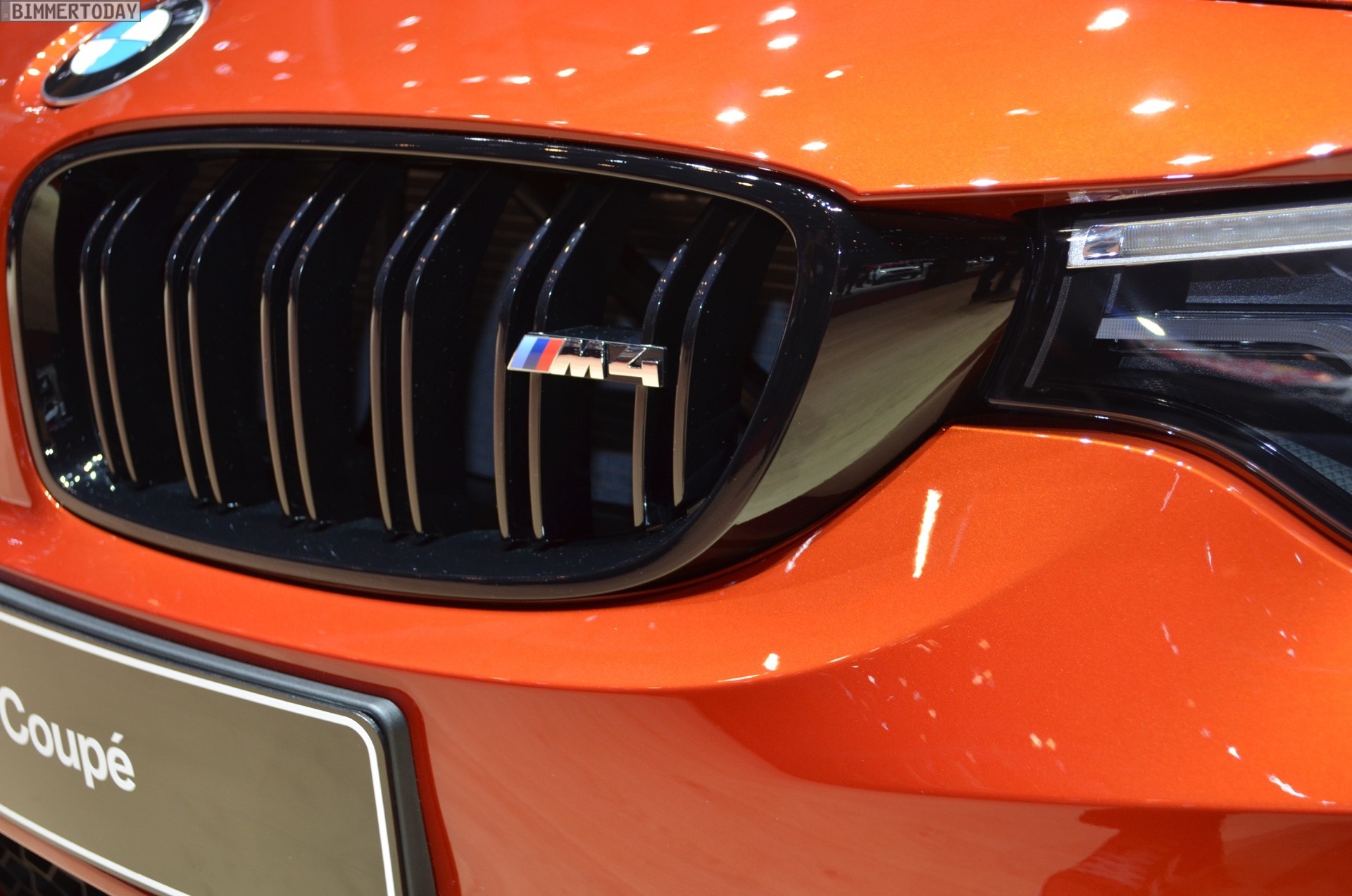 On the first live photos from the show, we see the BMW M4 F82 LCI in Sakhir Orange, as well as with 20-inch light-alloy wheels of the star-spoke type 666 M – a clear indication of the Competition Package, which also provides a power increase to 450 hp after the facelift.