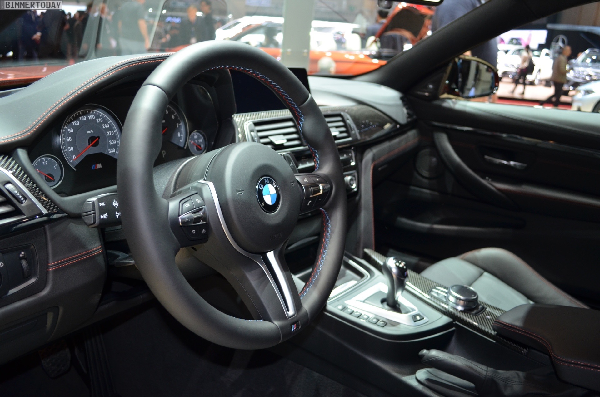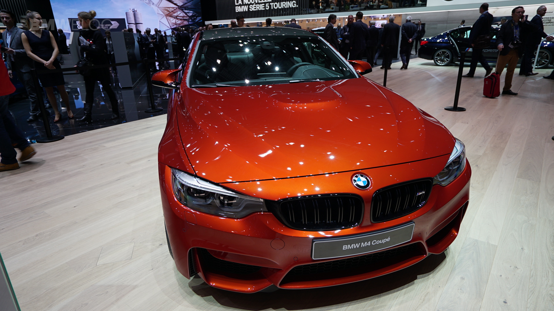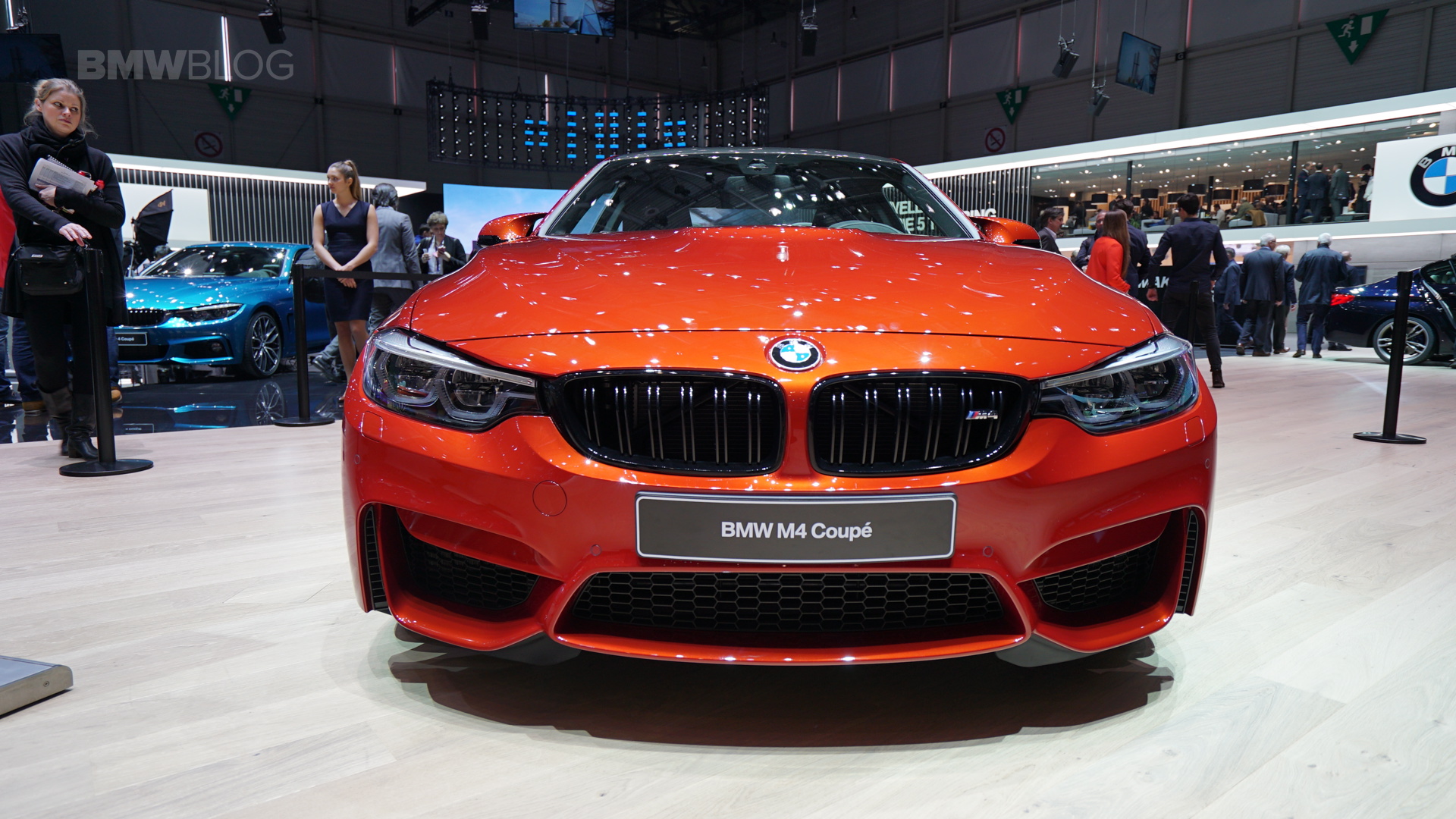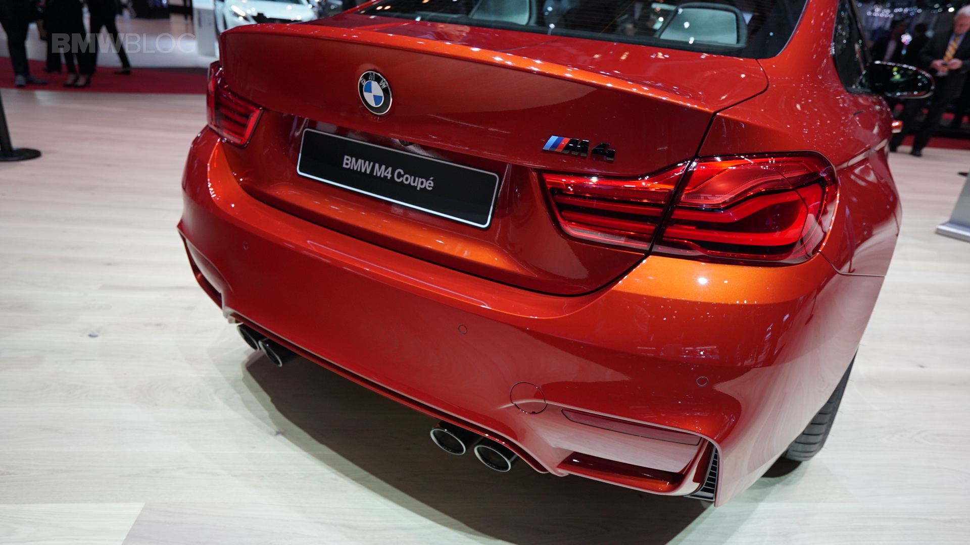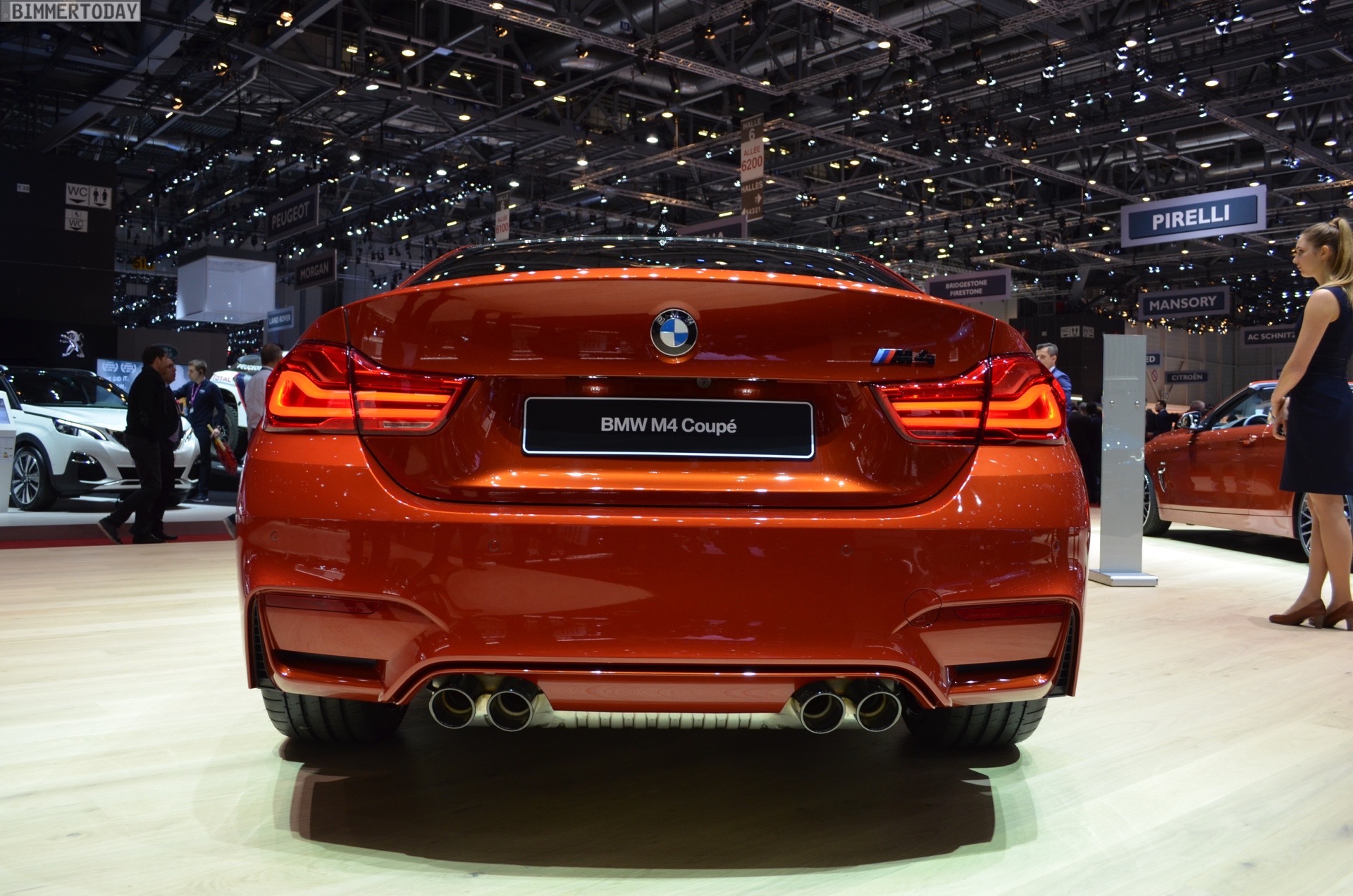 On the first live photos from the show, we see the BMW M4 F82 LCI in Sakhir Orange, as well as with 20-inch light-alloy wheels of the star-spoke type 666 M – a clear indication of the Competition Package, which also provides a power increase to 450 hp after the facelift.