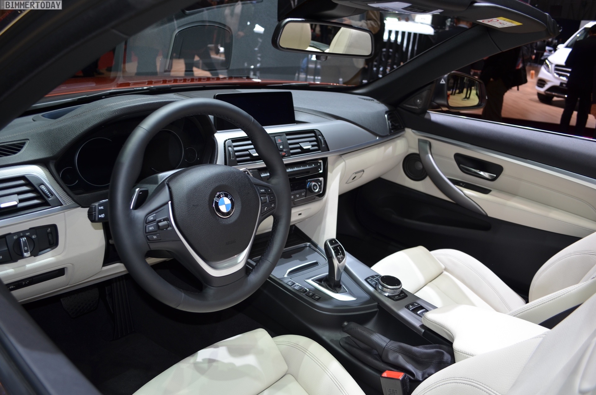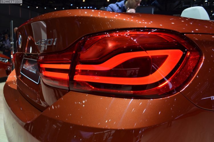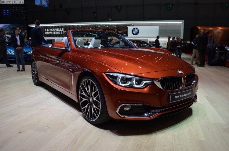 As in the first pictures of the facelift, the BMW F33 4 Series Convertible LCI also radiates the world premiere at the 2017 Geneva Motor Show in Sunset Orange Metallic. The new varnish is combined with the elegant Luxury Line and showcases its brilliance in the spotlight at the BMW booth.