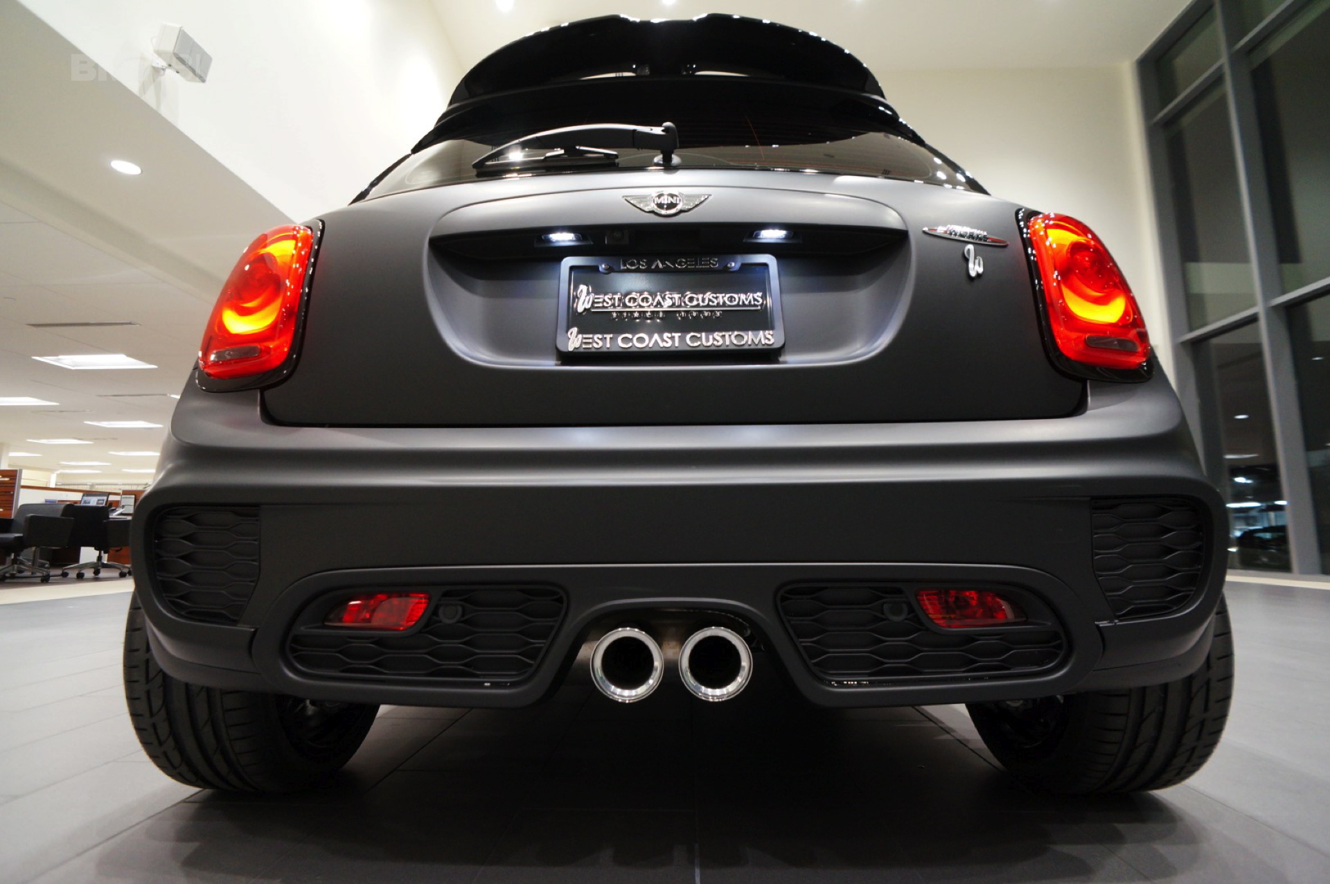 The result of Marino & Friedlinghaus’ union may be “understated if understated is synonymous with “sick” and “viciously-cool”. With the design in mind, the West Coast Customs team went to work: custom matte-black wrap, shadowline exterior trim, gas cap, front grill and a subtle 35 percent window tint. Both Marino & Friedlinghaus, early-on, agreed to utilize MINI parts whenever possible so shadowline headlight & taillight trim pieces were sourced along with a gorgeous set of 19” JCW Style 526 wheels.