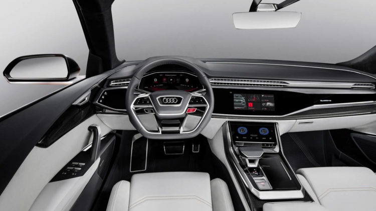Move inside and you are greeted with a very upmarket cabin. Audi Virtual Cockpit is standard and apart from that, there are a couple of touchscreens on the center console. Once the Q8 makes into production, we expect it to get a myriad of autonomous driving aids as well.