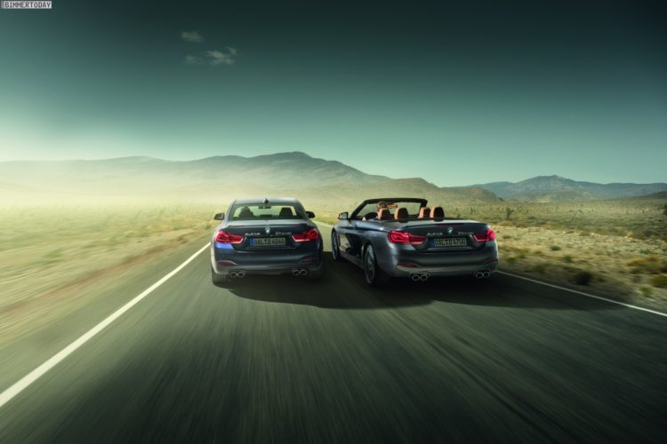 The BMW ALPINA D4 Coupé, which is 230 kilograms lighter compared to the convertible, accelerates from 0 to 100 in just 4.6 seconds, to 200 in 17.9 seconds and finally reaches a top speed of 278 km/h. The ALPINA D4 Convertible is also anything but slowly, traveling with 5.0 seconds to 100, 18.9 seconds to 200 and 275 km/h maximum speed. And with an EU consumption of 5.3 and 5.9 liters per 100 kilometers, it is also clear that the two revised D4 show no unbridled drinking despite imposing driving.
