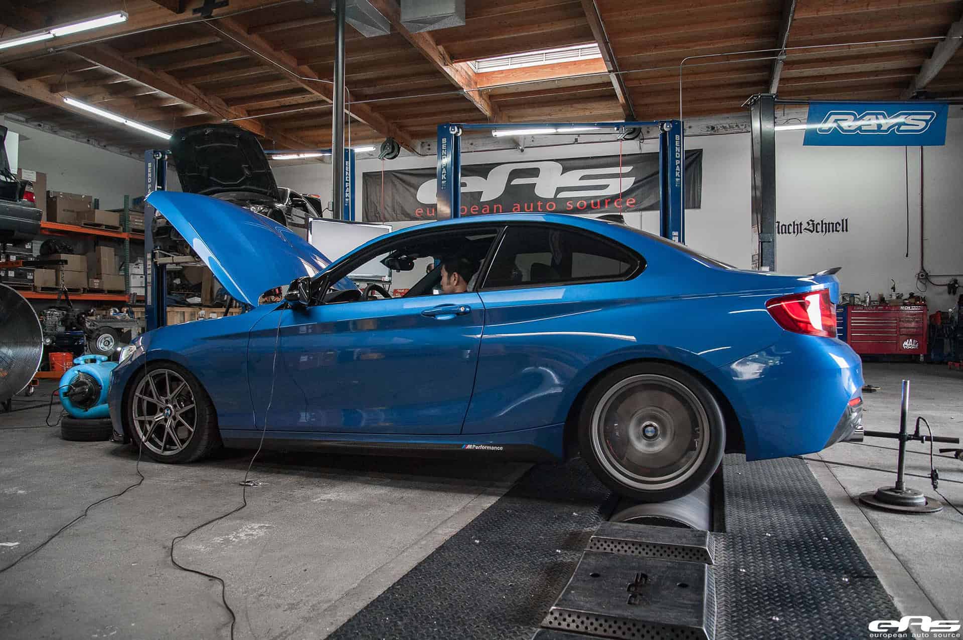 The tuning shop started off the build with the recently released DINANTRONICS Elite tuner, made for the M240i model range. This allows gains of 47 horsepower and 63lb-ft of torque to be achieved, bringing up the power to 414 horsepower and 478 lb-ft of torque. With this tune, the M240i comes rather close to the power and performance levels of the M2 – just what the owner wanted.