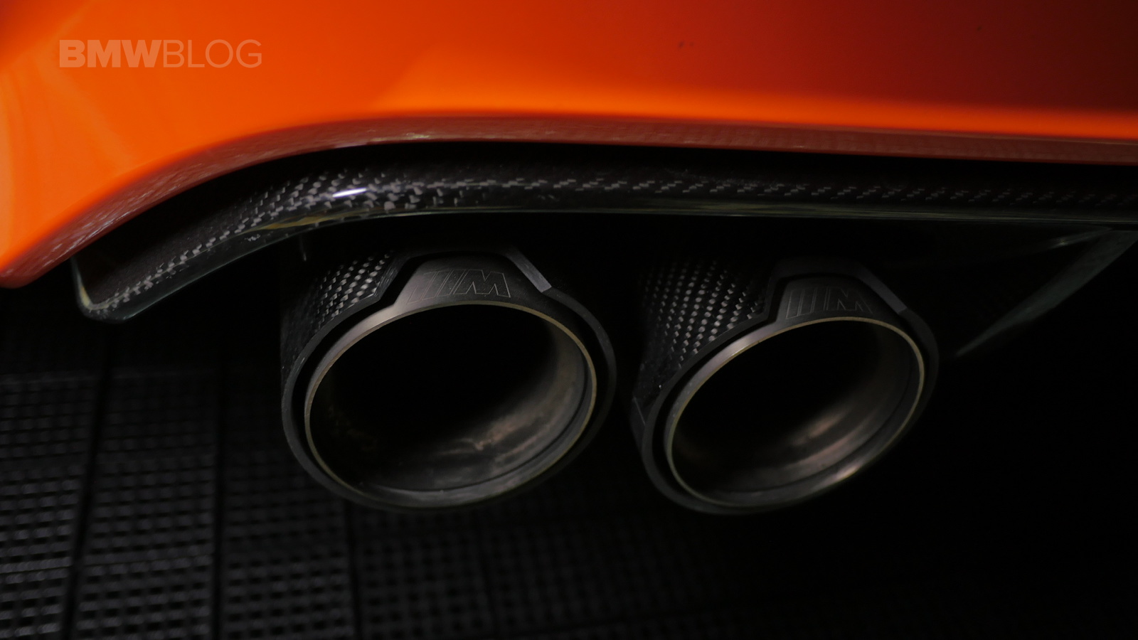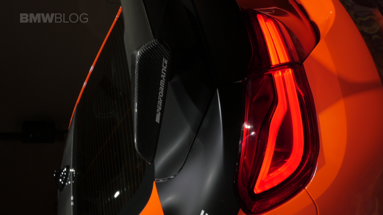 The model shown here features an M Performance exhaust system made of titanium, carbon fiber exhaust tips, a carbon fiber diffuser, style 763 wheels which will soon be available on the M3, M4 and even the M2. Featured here are 19 inch front, 20 inch rear wheels, painted in matte black.