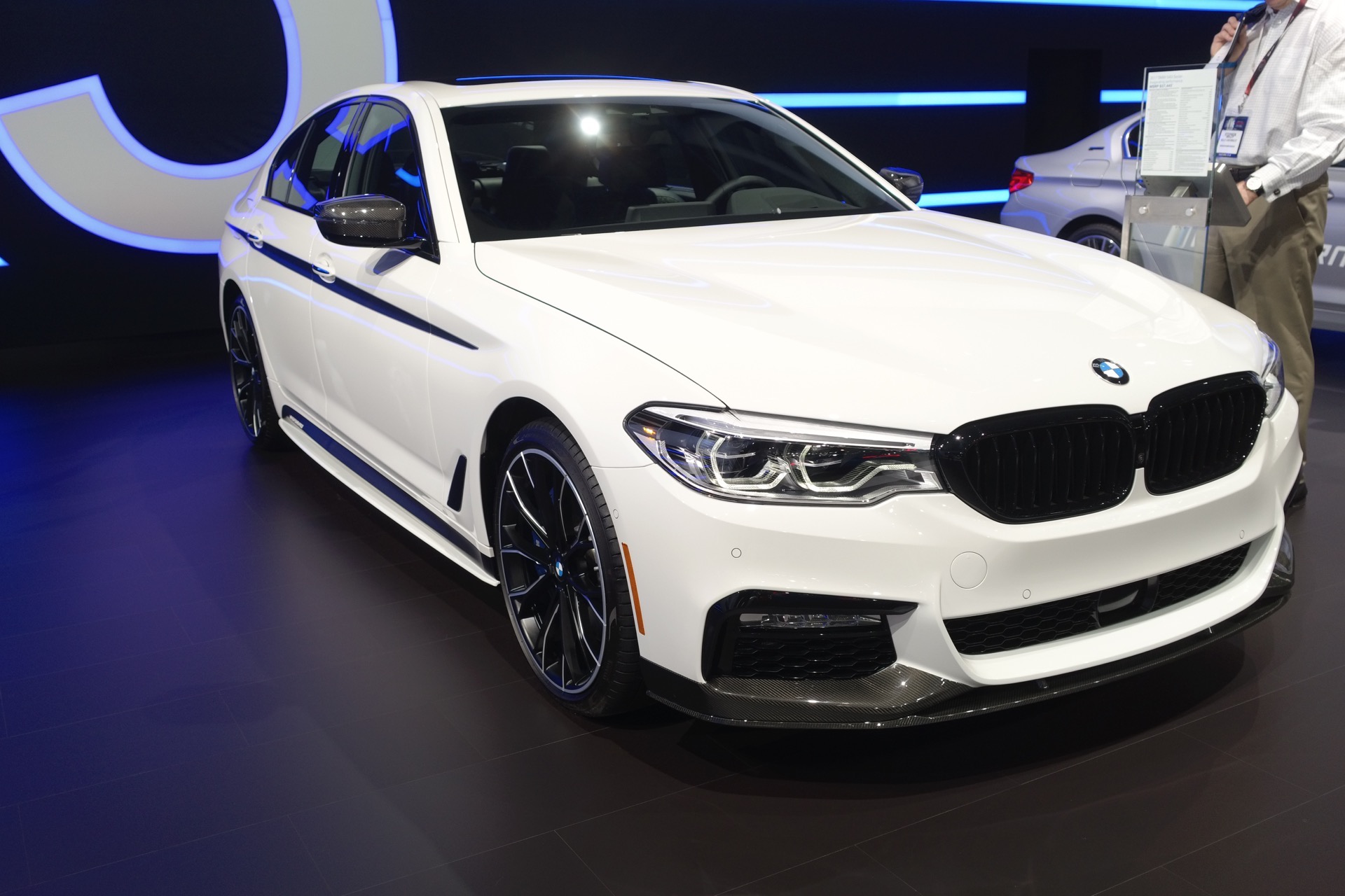 We’re currently at the 2017 New York Auto Show, walking the floor and checking out all of the pretty new cars. Except, for BMW, there aren’t a lot of new cars. While the 5 Series is technically new, it’s nothing we haven’t seen before. However, the Bavarians did add some flair to the BMW 540i at this year’s show, with some M Performance parts.