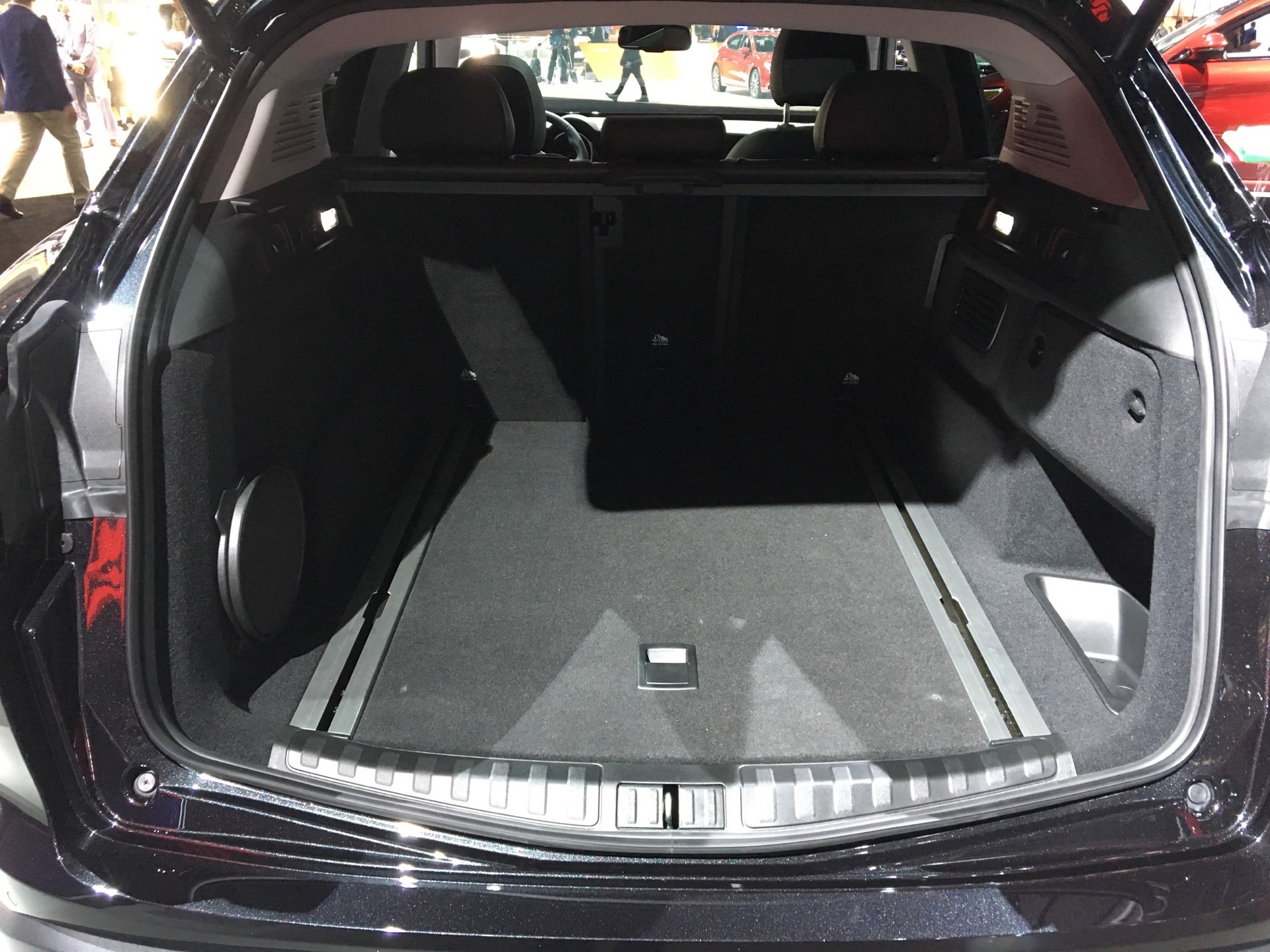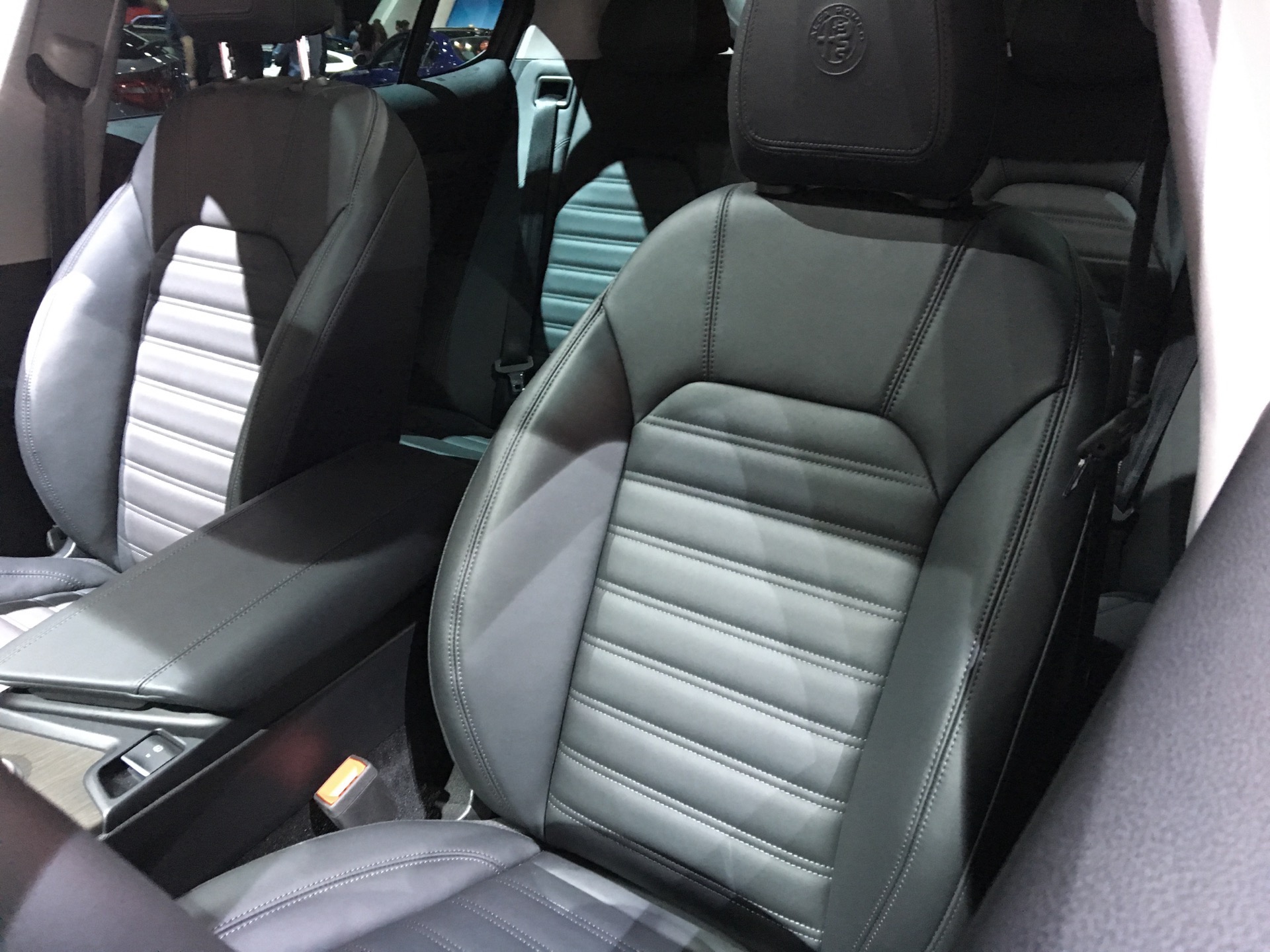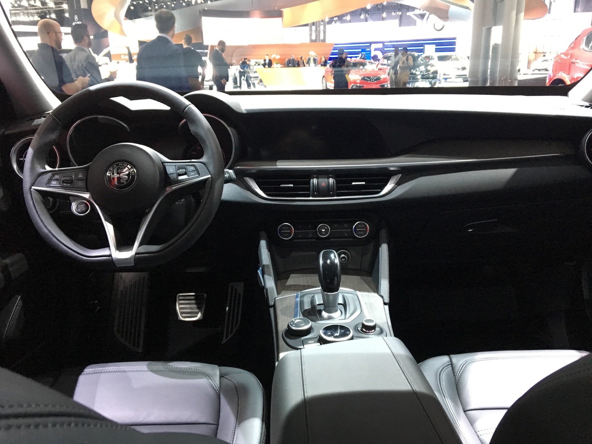 Inside, the Stelvio’s cabin is handsome and well laid out. Most materials seem of high quality and ergonomics are mostly good. However, there is the errant cheap-feeling material or plastic and strangely placed button. In the back seat, knee and leg room was a bit compromised, even for me and I’m only 5’9″. Though, headroom was ample and the seats were comfortable enough. The trunk also seems big enough to compete in the segment. Overall, the cabin of the Stelvio will make a lot of customers happy in the U.S.