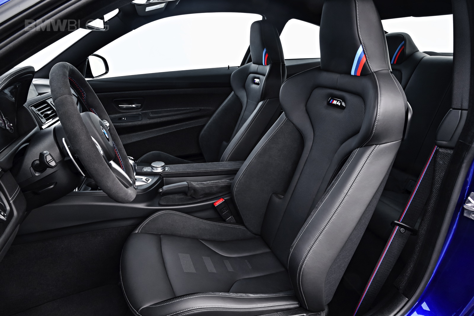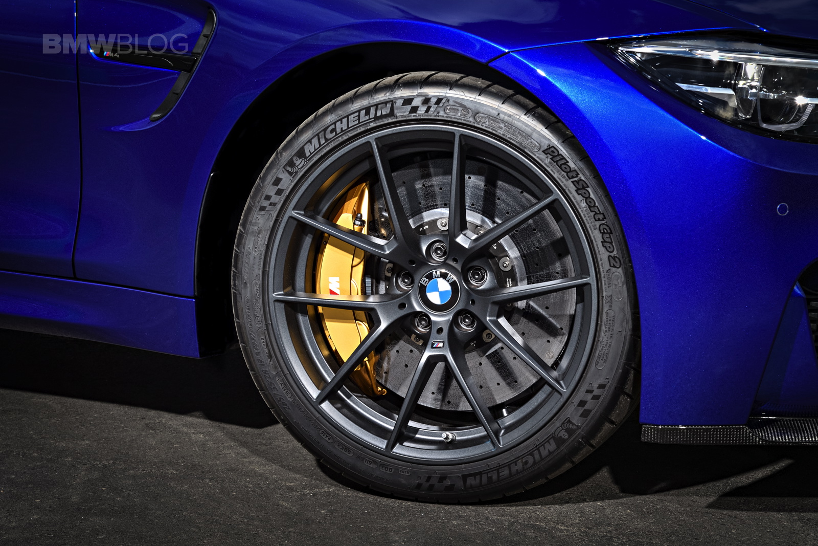 There are also three colors specific to the BMW M4 CS as factory colors, not Individual options. The first is the San Marino Blue Metallic, as shown in the pictures and was a popular Individual color on the standard car. There’s also a Lime Rock Grey Metallic and a very special Frozen Dark Blue II, the latter of which is a matte finish and will only be available on a limited number of cars.