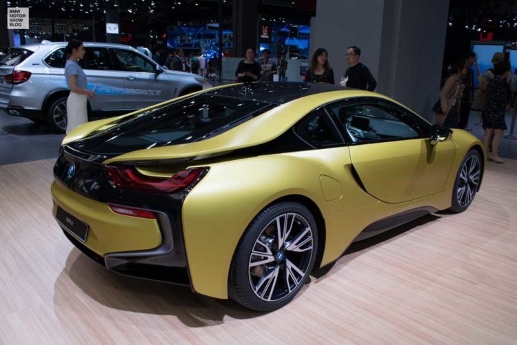 As seen in these live photos from Shanghai, the exclusive exterior shade has a silky shimmer; it looks more like a golden dress than a simple yellow paint job. The special-edition, that will go into production in September, will sport newly designed 20-inch BMW i light-alloy wheels in W-Spoke design with matte-painted surfaces and mixed-size tires.