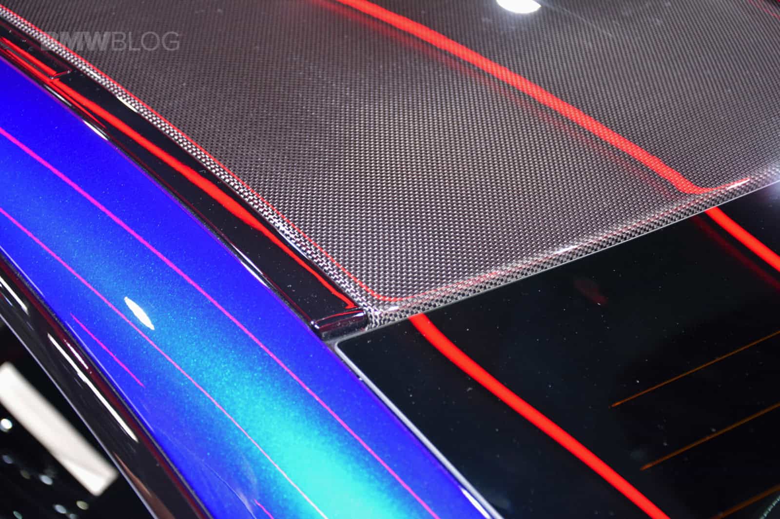 In the interest of weight reduction, the new edition has Alcantara-covered seats, door panels with pull-loops, and a roof constructed of carbon fiber-reinforced plastic.