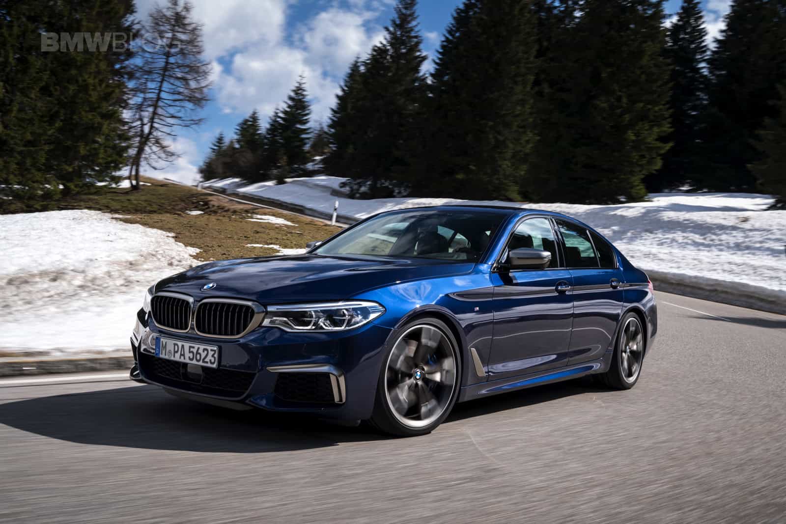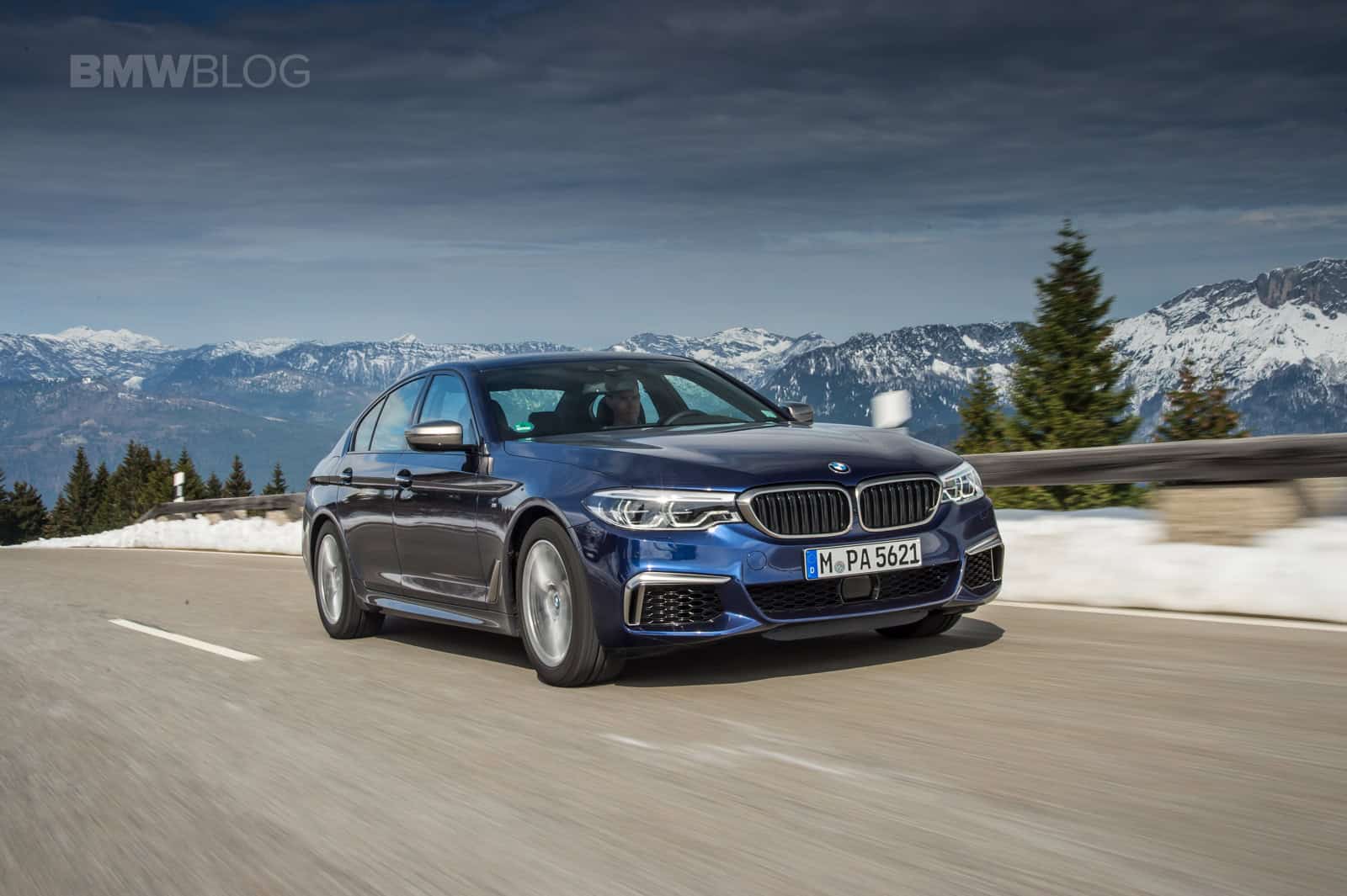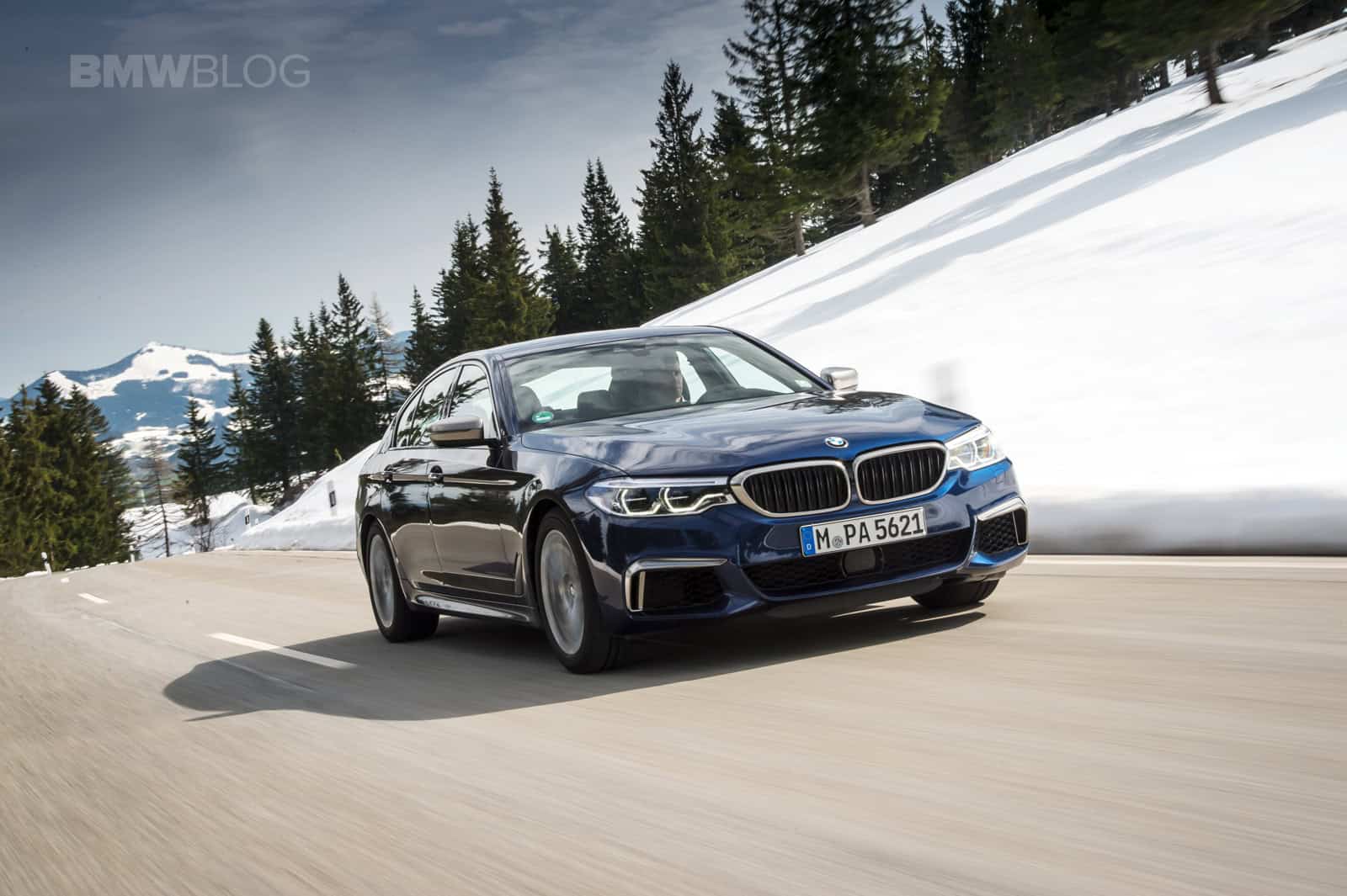 BMW flew us to Munich to find out just how good the M550i is. The weather during the drive was a little cool. In fact some of the journalists got snowed in the mountains and the test cars had performance snow tires on them. The M550i we tested was Mediterranean Blue Metallic with a Mocha Nappa leather interior.