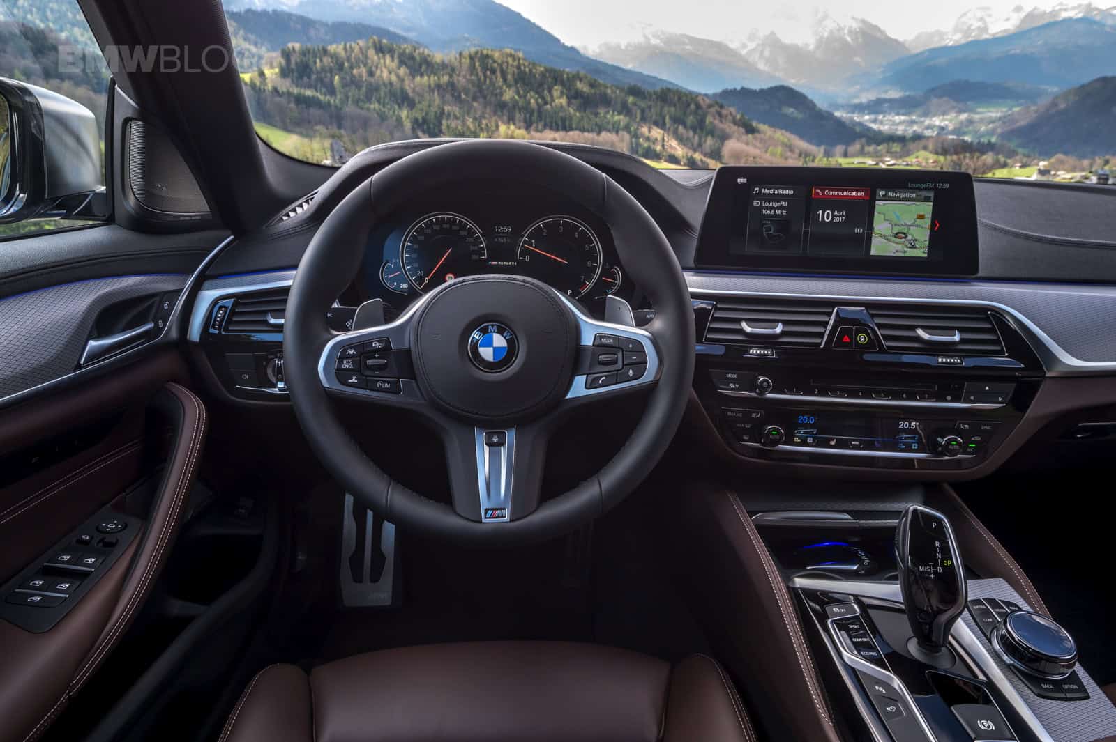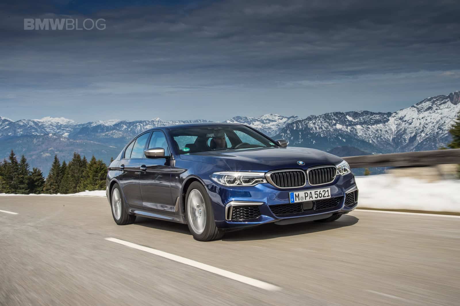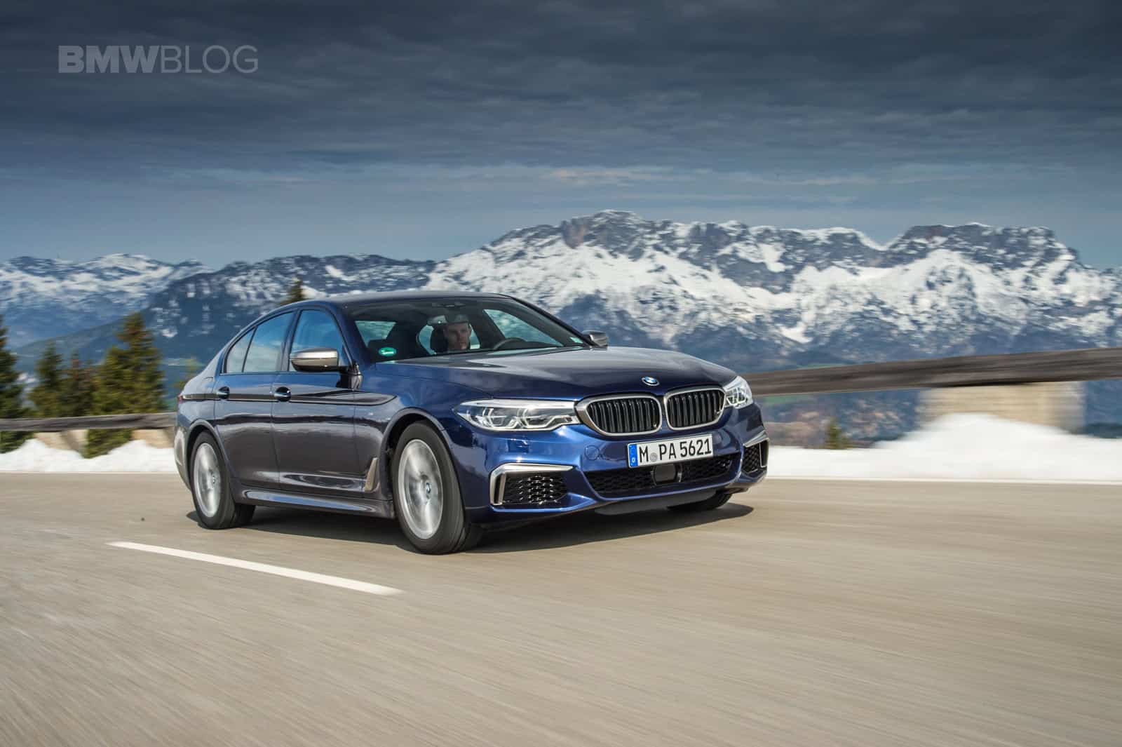 BMW flew us to Munich to find out just how good the M550i is. The weather during the drive was a little cool. In fact some of the journalists got snowed in the mountains and the test cars had performance snow tires on them. The M550i we tested was Mediterranean Blue Metallic with a Mocha Nappa leather interior.
