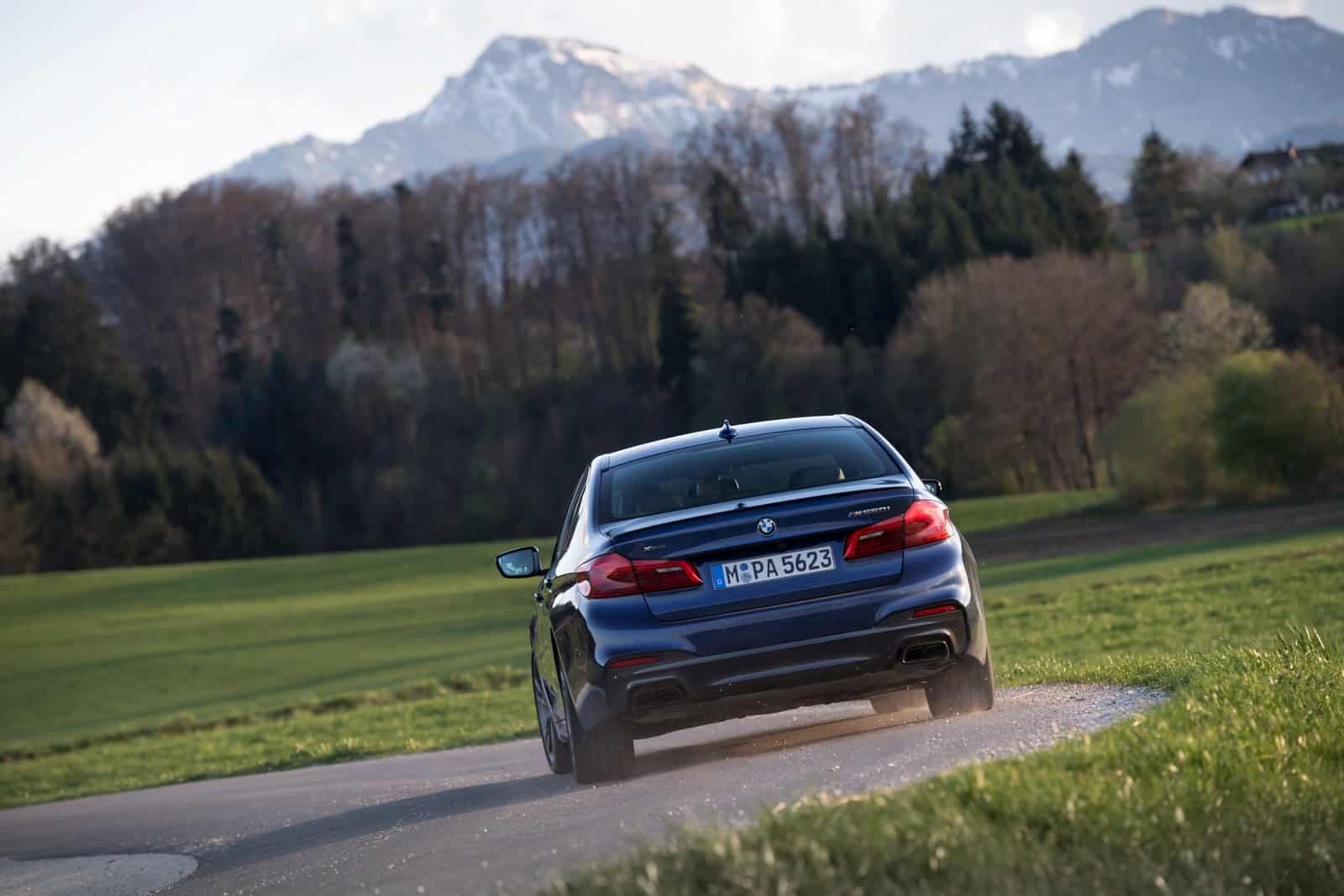 Power out of tight switch back in the Alps and the car just bolts right up to the next corner emitting an incredible sound with unique M Performance Exhaust. All this power is routed through all four wheels gave the M550i sure footing especially given snow had just melted and as there was some sand still on the road.