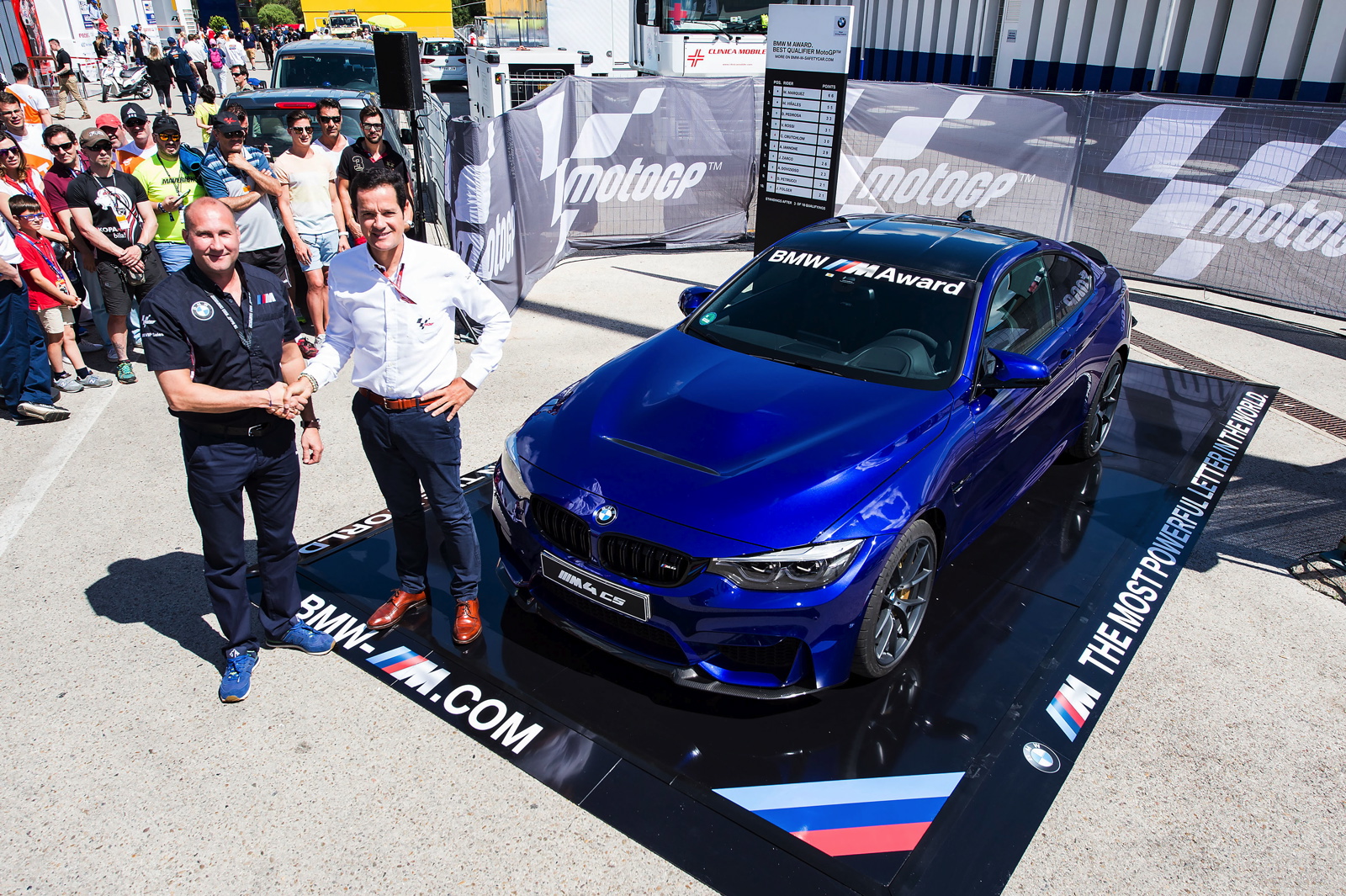 Since 2003, the MotoGP rider with the best qualifying results has been recognised at the end of a season with an exclusive and customised BMW M automobile. The car for the 2017 winner, the new BMW M4 CS in San Marino Blue Metallic, was unveiled today at the Spanish Grand Prix in Jerez de la Frontera.