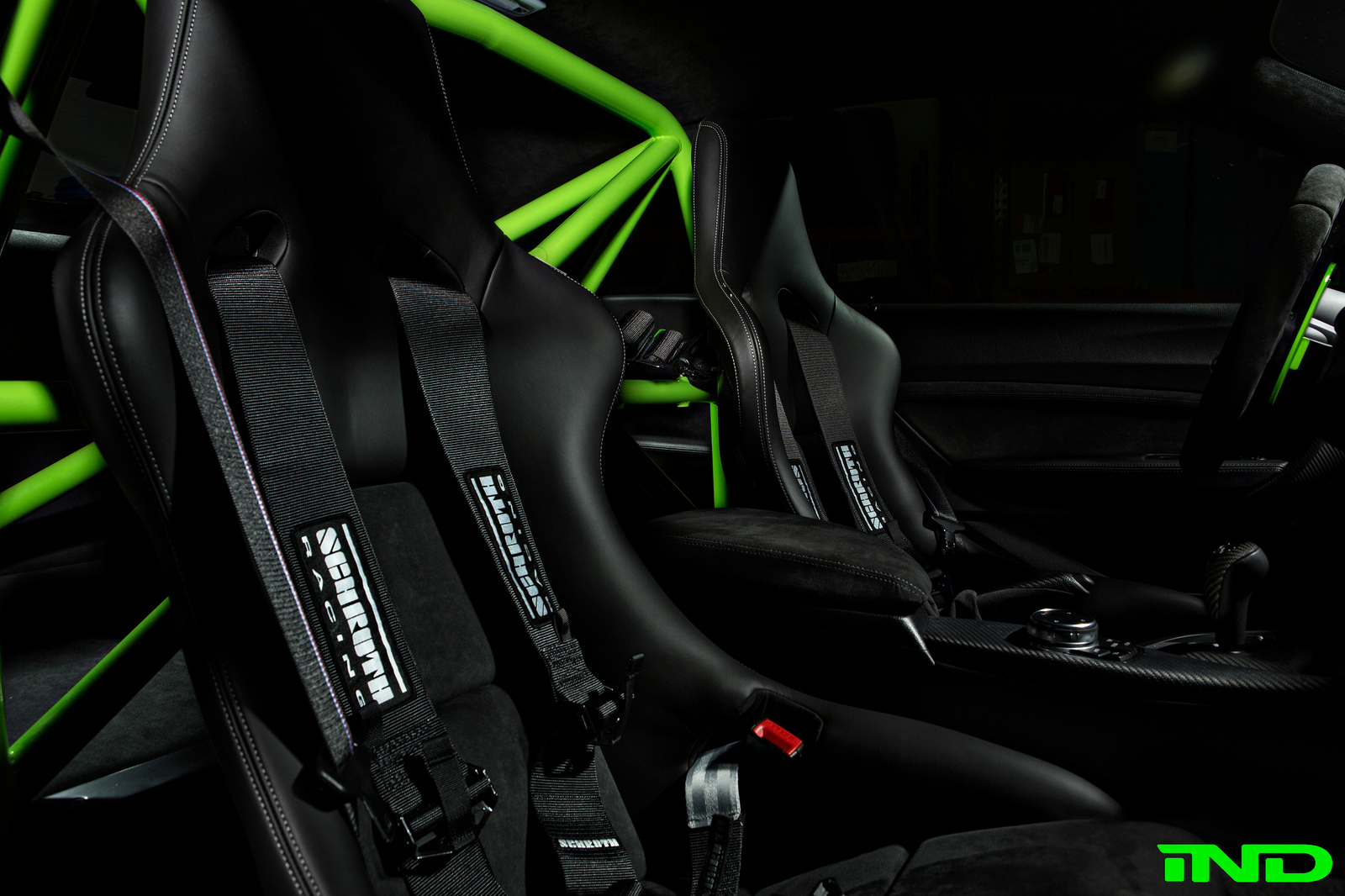 The M2 was delivered from BMW with a relatively austere interior, so IND got to work. They aimed to integrate a host of original BMW Performance and BMW Motorsport components in order to pursue an “OEM track model” feel comparable to the M4 GTS. Two items would become centerpieces for the theme of their M2 interior: the BMW GTS European seats, and the BMW Motorsport roll bar found in the MotoGP pace car.