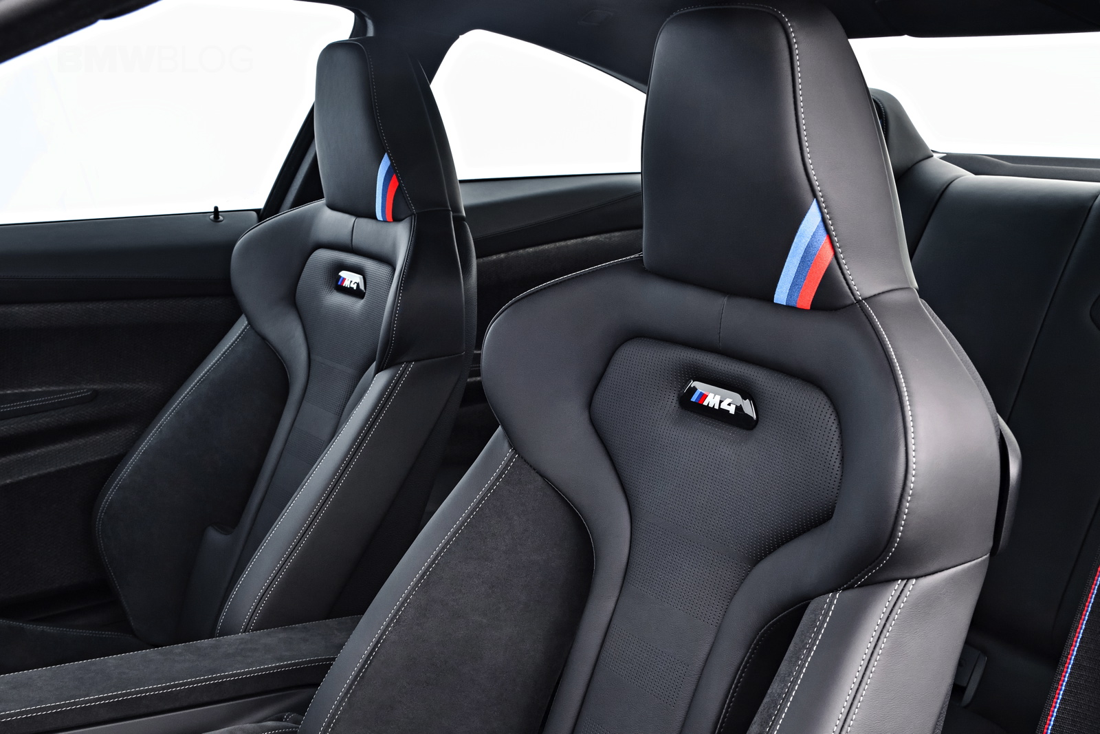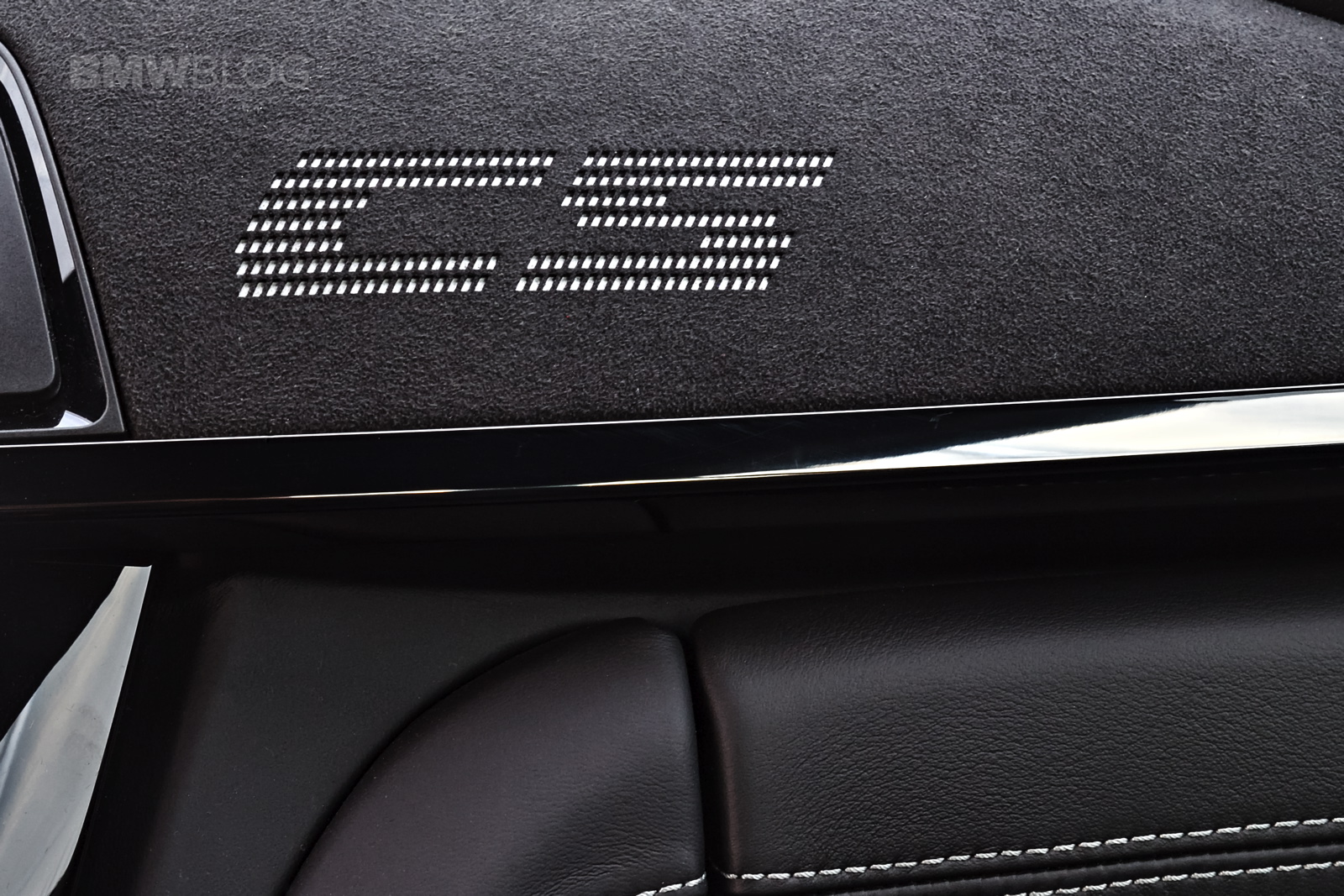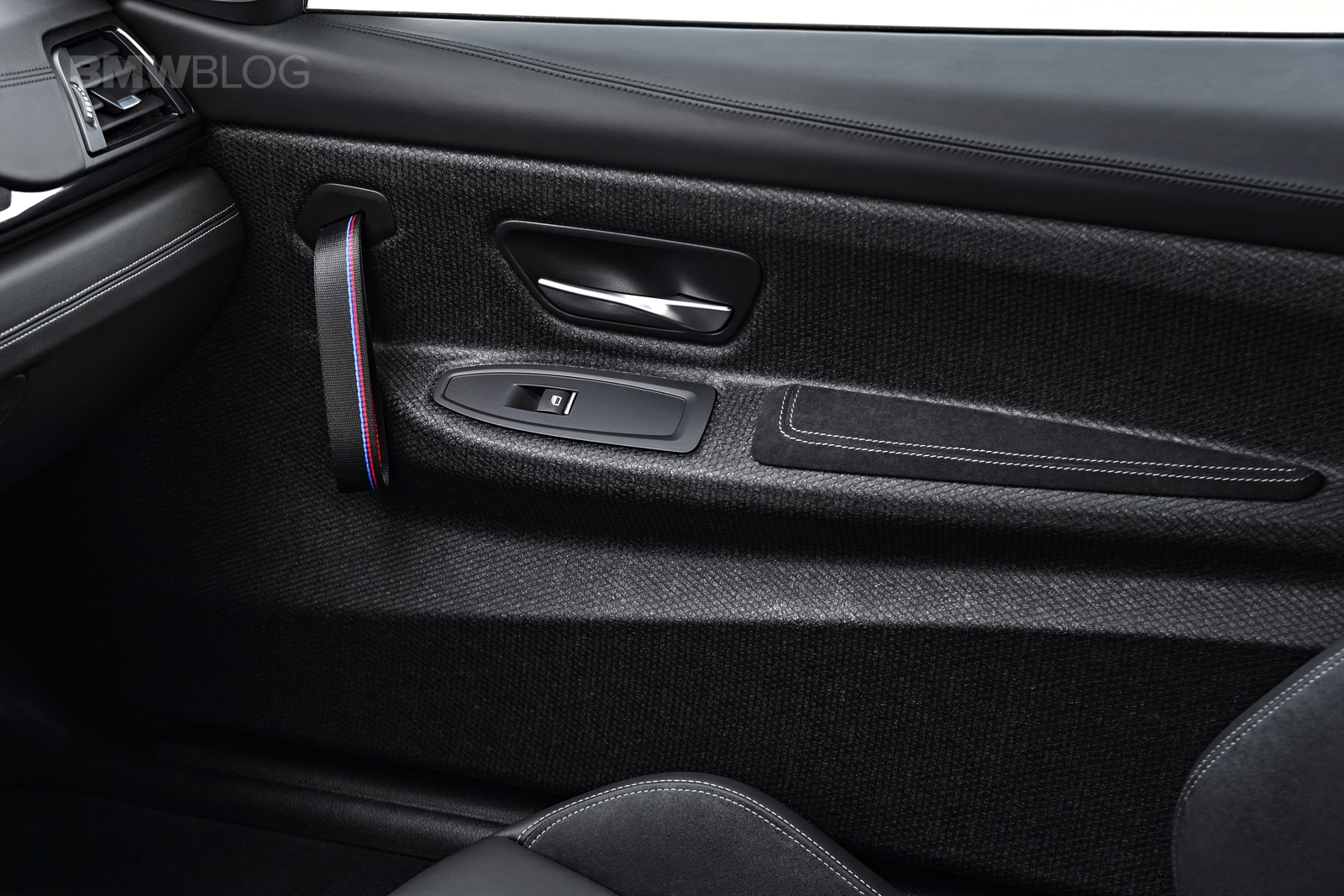 Inside, the BMW M4 CS gets some GTS treatment as well as some of its own design bits. The naked carbon fiber door panels and door straps are pulled from the GTS but the rest of the car is unique to the M4 CS, like the alcantara steering wheel with center line and a unique “CS” logo embroidered into the alcantara dash trim.