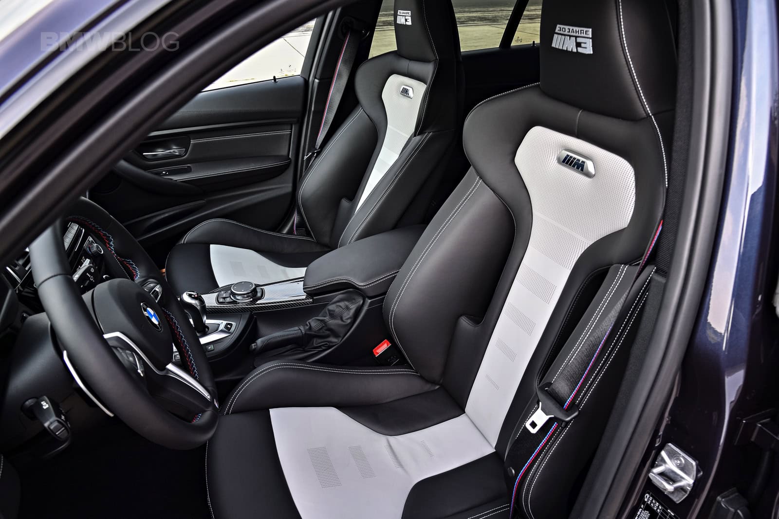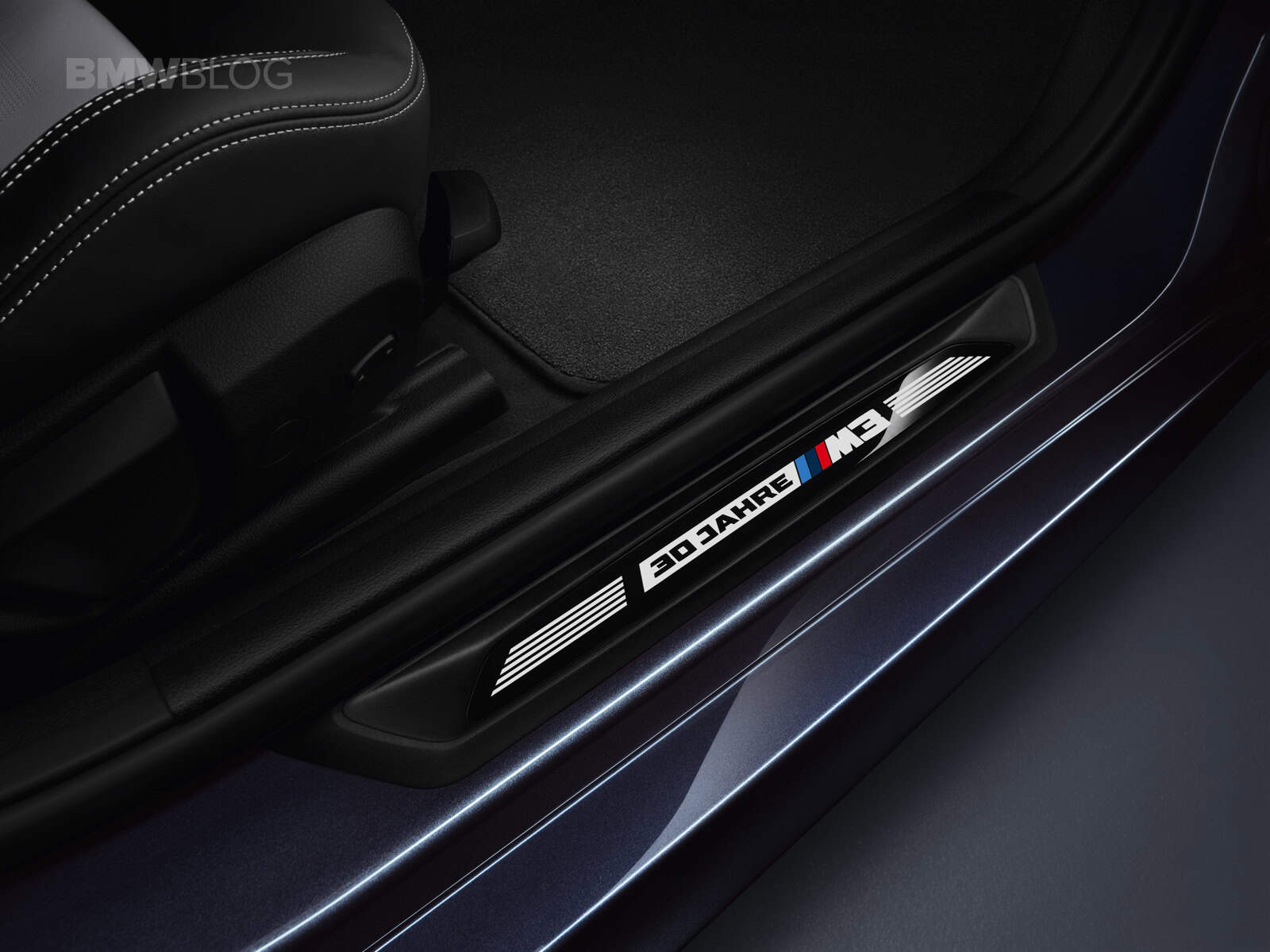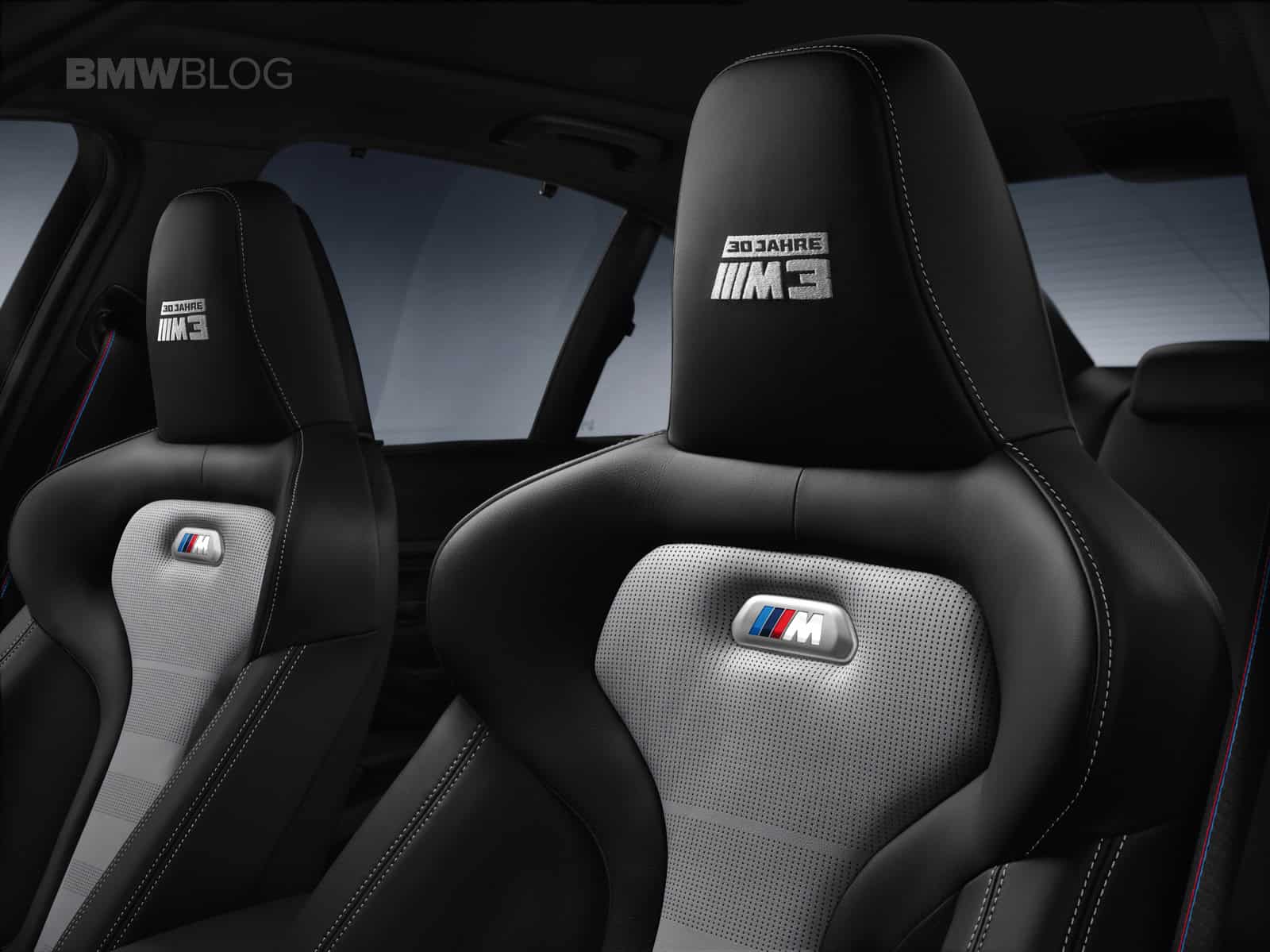Highlighting the unique and limited production, special “30 Jahre M3” logos embellish the interior. Exclusively designed M gills bear the logo as well as the doorsill finishers, interior trim finishers in carbon fiber with Black Chrome accents and the embroidered front headrests.