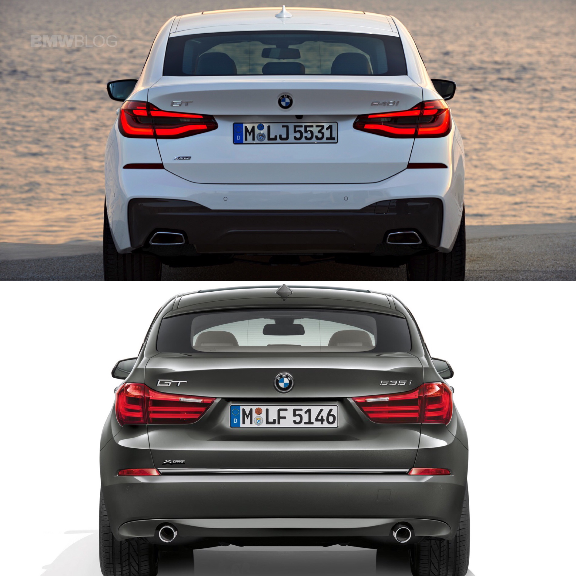 Okay, so from the front, the two cars are night and day. The new 6er GT wears a similar face to the new G30-gen BMW 5 Series, which is a good thing. That’s a handsome car so it’s a good one to copy. So this new 6 Series Gran Turismo has a nice face. It’s far improved over the 5 Series GT that pre-dated it.